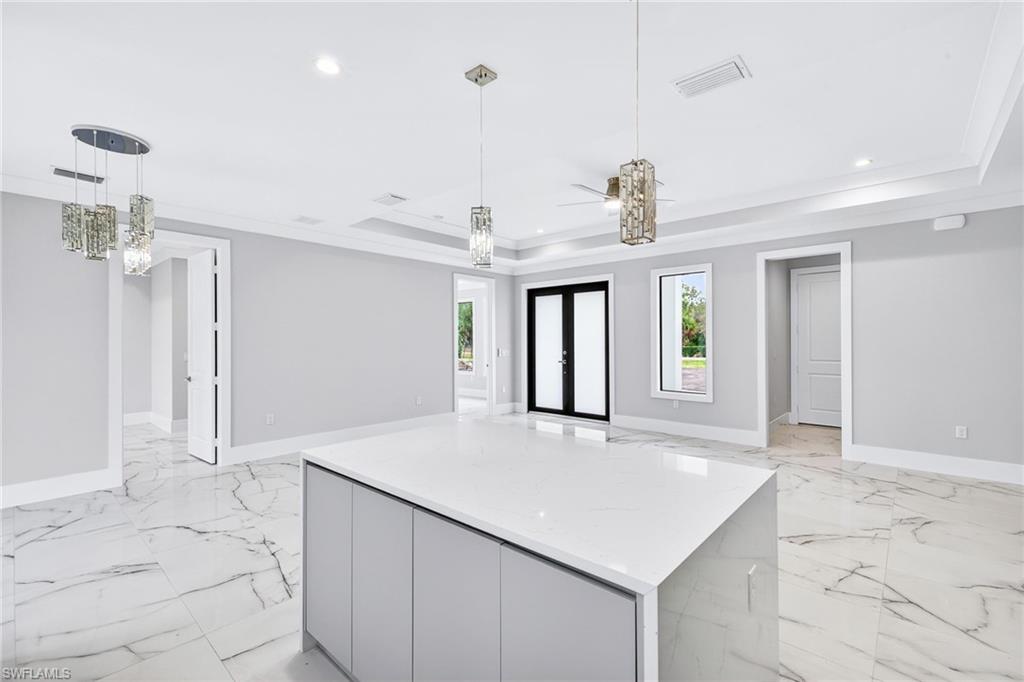 LOCATION, LOCATION, LOCATION! The perfect combination of New Construction, Acreage, Affordability and Close Proximity to ALL Naples has to Offer. No restrictions or HOA fees. This gorgeous new built boasting 2 + acres located right off the new Vanderbilt Beach Rd Extension, features 9'4" high ceilings with 10' tall tray ceilings; tile carried out throughout the house creating a clean, seamless, and spacious look; a fresh modern kitchen with all CUSTOM cabinets, quartz countertop, a waterfall island; crown molding on main living area and master bedroom; 6" baseboards throughout; 8-ft doors; and beautiful, modern bathrooms featuring vessel sinks and custom cabinetry. ALL IMPACT RESISTANT WINDOWS AND DOORS. Automated sprinkler system and asphalted driveway. Photos are a representation of a similar model. Professional photos of the Actual house coming soon.
