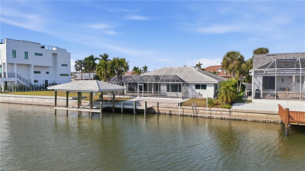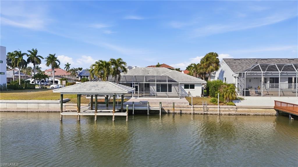 An exceptional waterfront opportunity on an 80-foot-wide lot with coveted southern exposure and a rare, extra-wide canal view that creates an expansive, open feel on the water. The existing single-family residence is not move-in ready, but offers a strong foundation for renovation. The home has been professionally remediated, and the property is in the reconstruction phase. All flooring is in place, and shower enclosures are installed, while select materials are already on site, including countertops in various materials, which have not yet been installed. The layout offers four bedrooms plus a den, with multiple en-suite bedrooms, providing an ideal framework to complete a high-end waterfront renovation. For buyers considering new construction, the property is equally compelling. Builder plans and preliminary pricing are underway for a new custom residence of approximately 5,000 square feet under air, along with existing proposals for house demolition and a new seawall, allowing an investor or end user to step directly into the process with meaningful planning already in place. The property also features an existing large pool, perfectly positioned to take advantage of the southern exposure and wide canal views, enhancing the ability to enjoy the home during a renovation or as part of a future custom build. Boaters will appreciate Gulf access via the pass and the presence of an existing boathouse, which may offer an opportunity for remediation and, subject to permitting and approvals, potential grandfathered replacement. Southern exposure delivers sun-filled days and glowing sunsets, making this a rare chance to secure a premier waterfront setting with flexibility, upside, and a clear path forward in one of Naples’ most desirable boating communities.