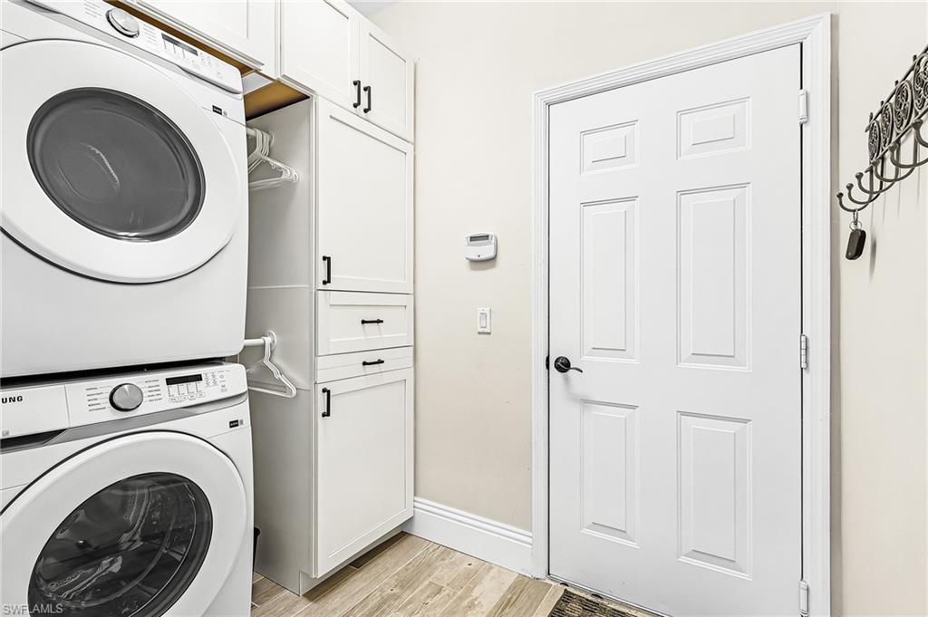 Welcome to your dream retreat in the sought after Spanish Wells community! This stunning ground floor corner end unit offers tons of natural light. Enter through the impressive 8 foot entry into a thoughtfully designed 3 bed/2 bath residence that has been beautifully renovated. The open concept living area features elegant plank tile flooring and soaring 9 foot + ceilings accented by contemporary 8 inch base moldings, creating an atmosphere of sophisticated spaciousness. The private lanai has breathtaking views of the preserve and the third hole of one of the community's exceptional golf courses. The modern kitchen is a home chef's delight, boasting quartz countertops, crisp white shaker cabinets, and thoughtfully designed lighting throughout. Because let's be honest, the kitchen is where everyone gathers. The generous primary bedroom easily accommodates your king-size bed and features two well lit closets, including a spacious walk-in. The en-suite bathroom offers a luxurious walk-in shower, relaxing soaking tub, double vanity, and private water closet. The second bedroom cleverly incorporates a murphy bed that transforms into a functional workspace, while the third bedroom comfortably fits a queen-size bed with ample closet storage. Additional highlights include new ceiling fans, custom plantation shutters throughout, updated laundry with abundant storage, and a 2 car garage complete with workshop space and room for your bicycles. Beautiful and large open space on the side of the building offering a very private feel and close to the community pool. Spanish Wells is a wonderful golf course community with golf and sports memberships available for an additional fee. Membership includes: golf, formal and casual dining, tennis, pickleball, bocce courts and a fitness center with classes. Prime location close to the beach, restaurants and shopping.Convenient location close to restaurants, shopping, local parks and just a quick drive to the beach and RSW airport. This location truly has it all. Schedule your private showing today and discover your new Florida lifestyle!