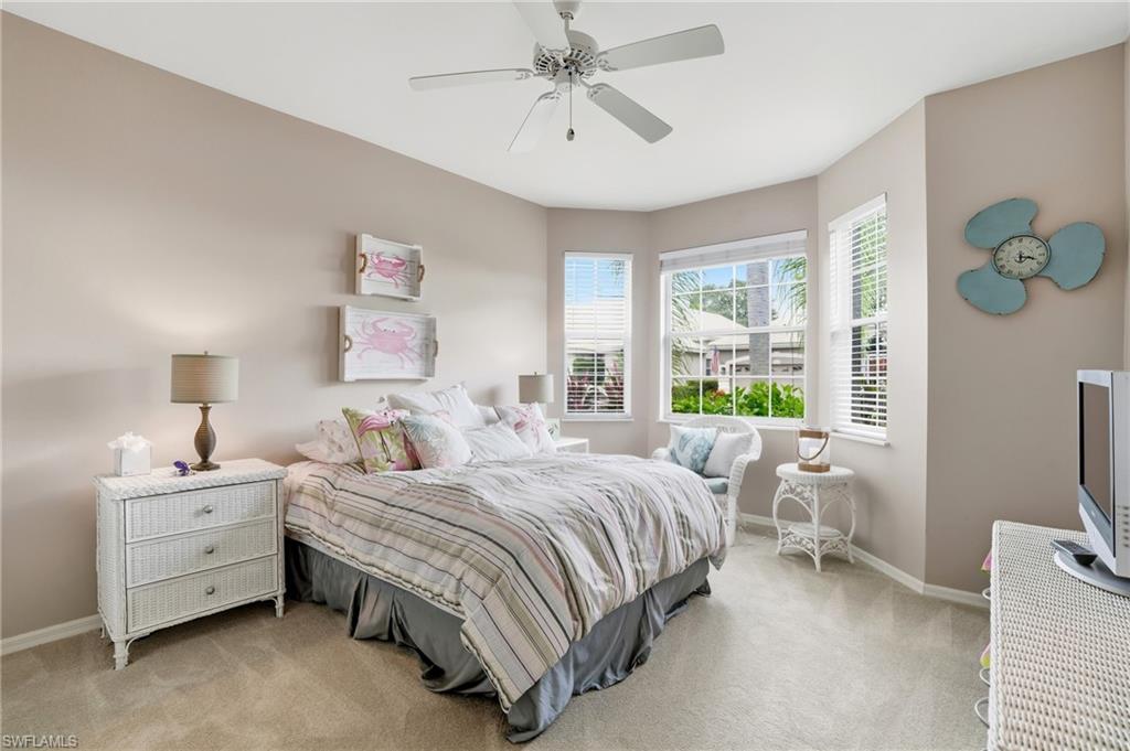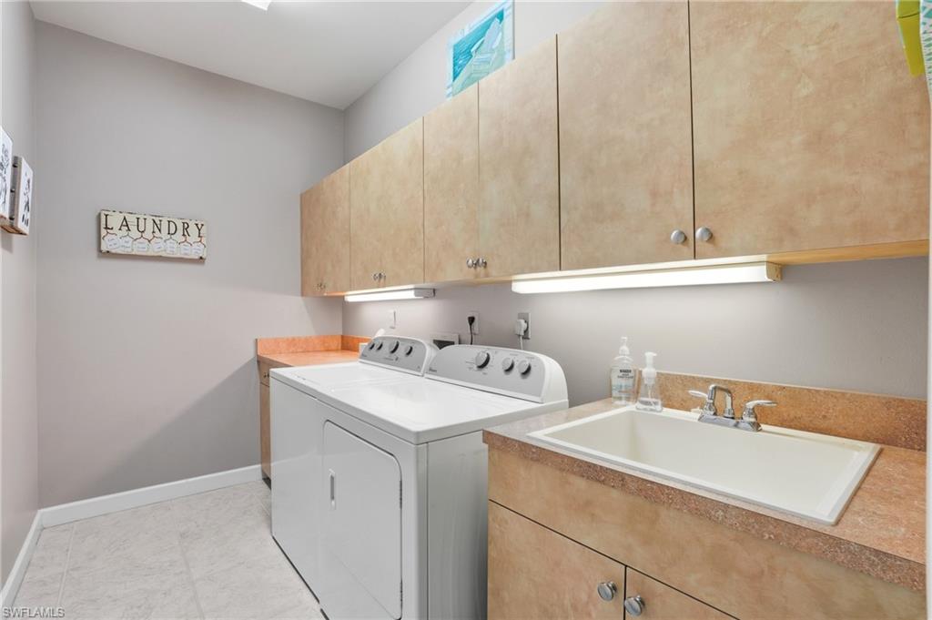 Step inside this beautifully maintained Brighton Model. This 2 Bed + Den, 2.5 Bath single-family home, in the sought-after gated community of The Vines, is offered TURNKEY and ready for new owners. It’s packed with upgrades including a BRAND NEW ROOF, HEATED SALTWATER POOL & SPA, NEWER HVAC, EPOXY FLOORS with OVERHEAD STORAGE and much more! With just under 2,200 sqft of living space, the thoughtful design welcomes you through a screened-in entryway and into a long, light-filled foyer with vaulted ceilings. The main living areas are finished with crown molding, tile, and carpeted flooring, setting the tone for both comfort and easy maintenance. The formal dining room features an arched windowsill and chandelier, while the living room showcases a transom window above the sliders for added natural light. The kitchen is both stylish and functional with solid-surface countertops, extended white cabinetry with under-cabinet lighting, stainless steel appliances, and a pantry. A cozy breakfast nook overlooks the sparkling pool and spa, blending everyday convenience with resort-style views. The primary suite is a retreat of its own, complete with plush carpet, two sliding glass doors to the lanai, and a large walk-in closet with built-in cabinet storage. The spa-like bathroom features dual sinks, a soaking tub, a walk-in shower, and two skylights that fill the space with natural light. The guest suite is tucked away at the front of the house and separated with a pocket door for added privacy. The room offers bay windows and a spacious closet, while the bath showcases a walk-in shower. The den with French doors serves as a versatile space, currently set up as a guest bedroom with two twin beds across from the half bath. The laundry room with a utility sink and cabinetry adds practicality, while the garage’s epoxy floors and overhead racks provide functionality and storage. Step outside to your private screened lanai, where the heated saltwater pool and spa overlook peaceful lake views and the 12th hole of Estero Country Club, offering the perfect setting for both quiet mornings and evenings of entertaining. Ideally located near Coconut Point, Gulf Coast Town Center, Miromar Outlets, RSW International Airport, FGCU, beaches, shopping, and fine dining, this home is positioned for both lifestyle and convenience. Life at The Vines offers more than just a home - it’s a lifestyle. This gated community is celebrated for its welcoming atmosphere, pristine grounds, and the rare benefit of NO WAIT LIST for golf memberships. Residents enjoy a wide range of amenities, including a championship 18-hole golf course (with golf membership optional), active tennis and pickleball programs, bocce courts, a fully equipped fitness center, and a vibrant clubhouse that features casual and fine dining along with year-round social events. Schedule your private showing today and discover why this home at The Vines is the one you’ve been waiting for!