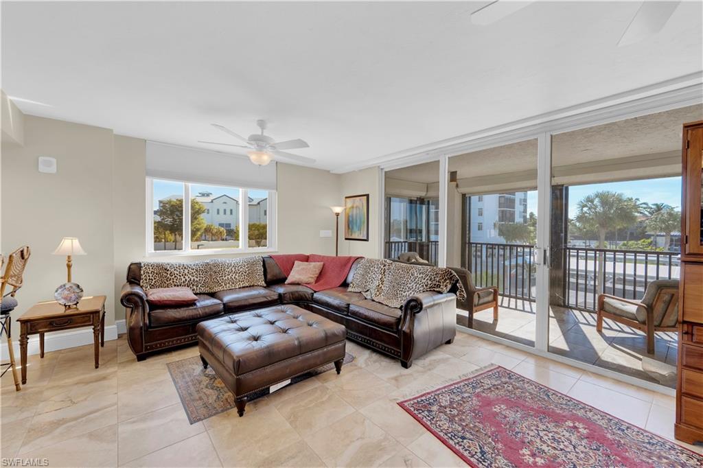 Ocean Harbour 102 is a bright and spacious 2-bedroom, 2-bathroom condo located in one of Fort Myers Beach’s most desirable gated communities. Perfectly positioned mid-island along the bay, this residence offers peaceful waterfront living while being just steps from the Gulf. Large west-facing sliding glass doors fill the home with natural light throughout the day and open to a generous screened-in balcony, ideal for enjoying morning coffee, reading, or relaxing in the evening breeze. Inside, the open living and dining area provides plenty of room for entertaining, with a layout that flows seamlessly to the balcony for easy indoor-outdoor living. The spacious kitchen features ample counter space, abundant cabinetry, and a convenient breakfast bar for additional seating. A washer and dryer inside the unit add everyday convenience. The primary suite offers private balcony access and a beautifully appointed bathroom complete with a stand-alone soaking tub, separate shower, and double-vanity sinks. The guest bedroom is comfortable and inviting, with an adjacent bathroom featuring a tub/shower combo. Ocean Harbour is a well-maintained, amenity-rich community offering a resort-style pool, hot tub, clubhouse, fitness center, tennis courts, pickleball courts, outdoor grills, and beautifully landscaped grounds along the bay. Boat docks and lifts are available for lease or purchase, making it an excellent option for boaters. Residents also enjoy an unbeatable location within walking distance to the beach and right next door to Publix and Snook Bight Marina, home to Junkanoo Below Deck and Fresh Catch Bistro. This property offers the ideal blend of coastal living, comfort, and convenience—perfect for full-time residents, seasonal owners, or those seeking a strong investment opportunity.