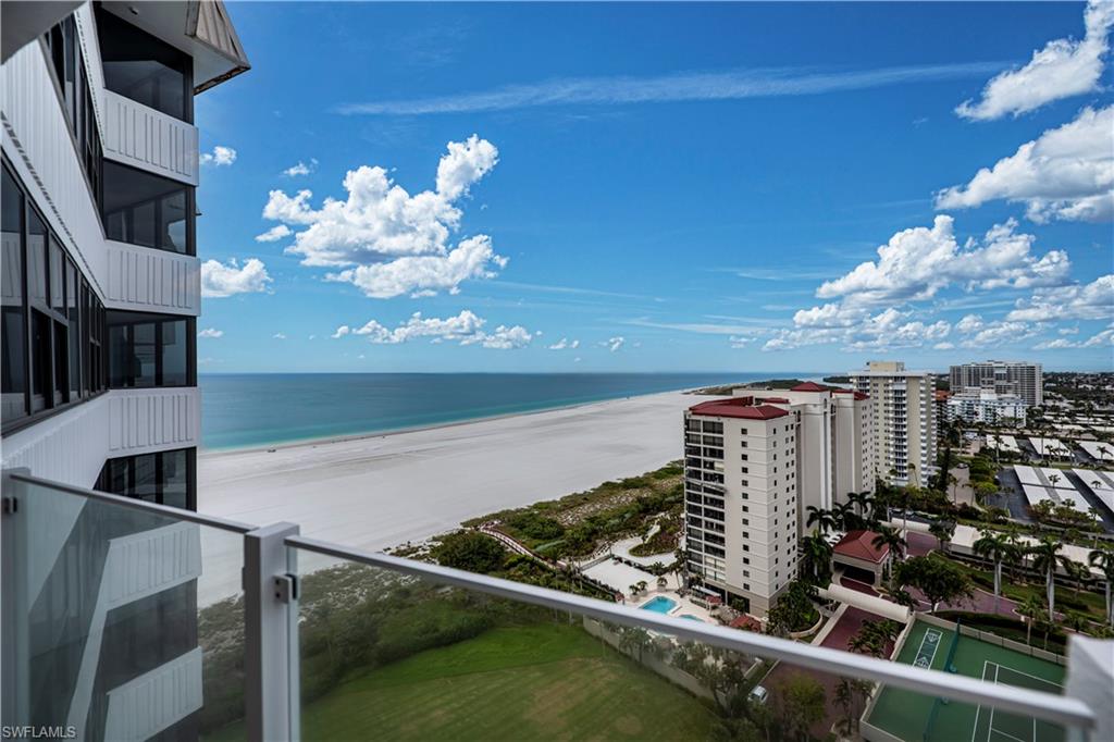 Experience unmatched luxury on the 20th floor with panoramic Gulf views stretching across beautiful sandy beaches all the way to Naples through Tigertail Beach, accompanied by stunning city lights—all with direct beach access just steps from your door. This turnkey furnished 2-bedroom, 2-bath coastal retreat offers an unbeatable location next to the private Residents Beach, featuring concession stands and music venues. The wonderfully updated kitchen and baths, combined with soothing paint tones, create a light, airy, and serene atmosphere. The expansive living area showcases sweeping views, while the private glass-front balcony allows you to immerse yourself in the sights and sounds of the coastline from the comfort of home. Enjoy two spacious king-sized bedroom suites, each offering tranquil sunset vistas from nearly every room, plus a dedicated office space. Features include impact-resistant windows and sliders, elegant crown molding, genuine bamboo wood flooring throughout, tastefully remodeled interiors, generous walk-in closets, updated fixtures and lighting, a new air conditioning system, and a hot water heater installed in 2022. Conveniently located closest to the elevator and laundry room, this home offers added ease and low HOA fees that include cable, internet, and water. Gulfview is a secure building with onsite management, and residents benefit from top-tier amenities including a resort-style heated pool, large tiki hut with grills, fitness room, library, social room, newly resurfaced tennis and pickleball courts, beach and bike storage, covered parking garage, and, of course, direct beach access to enjoy the sand and surf. Perfectly situated adjacent to Residents Beach and just moments from Marco Island’s fine dining, shopping, and entertainment options, this condo is ideal as a full-time residence, seasonal retreat, or investment property. Unbeatable location. Upscale design. The ultimate luxurious coastal lifestyle you’ve been waiting for is here. Your dream home awaits.