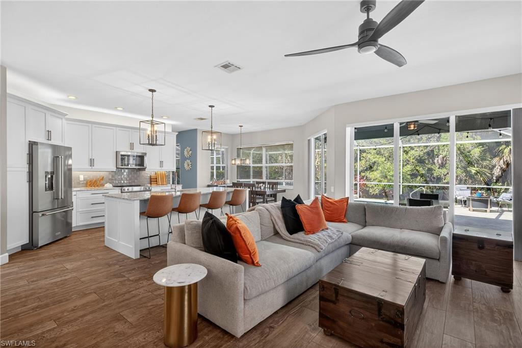 Welcome to 22866 Forest Ridge Dr, Estero, FL 33928, nestled in the desirable Marsh Landing community west of 41 surrounded by the best Southwest Florida has to offer. Enjoy exceptional dining, shopping, and world-class Gulf beaches, all just minutes from your doorstep. This spacious 4-bedroom, 2.5-bath home offers 2,517 square feet of thoughtfully designed living space with something for everyone. Step inside and you’re greeted by a beautiful foyer that leads into the heart of the home, an open-concept kitchen and living area designed for both everyday living and entertaining. The kitchen showcases custom finishes including stainless steel appliances, a large center island, custom cabinetry, and generous counter space. A whole-home entertainment system, centrally controlled by an iPad, adds modern convenience and a touch of luxury throughout. The expansive living areas feature high ceilings and abundant natural light, creating a bright and inviting atmosphere. The primary suite serves as a relaxing retreat with a spacious bedroom, walk-in closet, and remodeled en-suite bath complete with dual vanities and a walk-in shower. Additional remodeled guest bedrooms offer flexibility for family, visitors, or a home office. Step outside to your private screened in pool which backs up to the preserve, perfect for quiet mornings or afternoon cool off sessions in the pool.