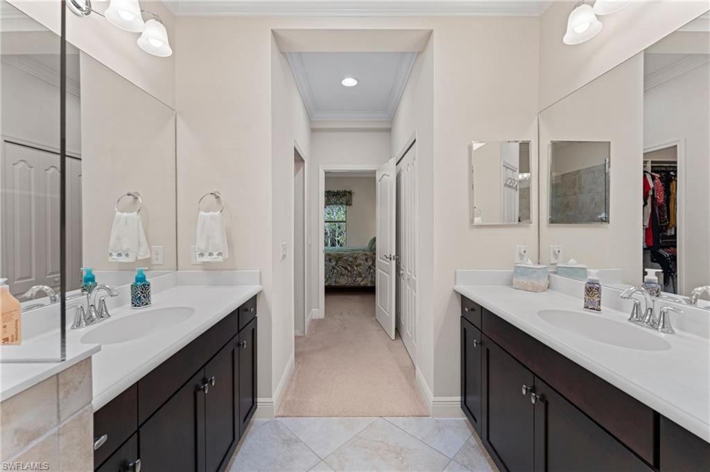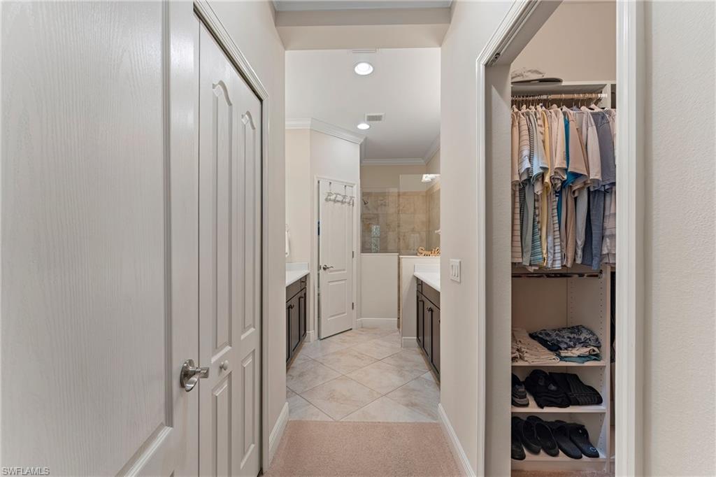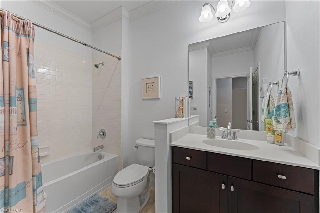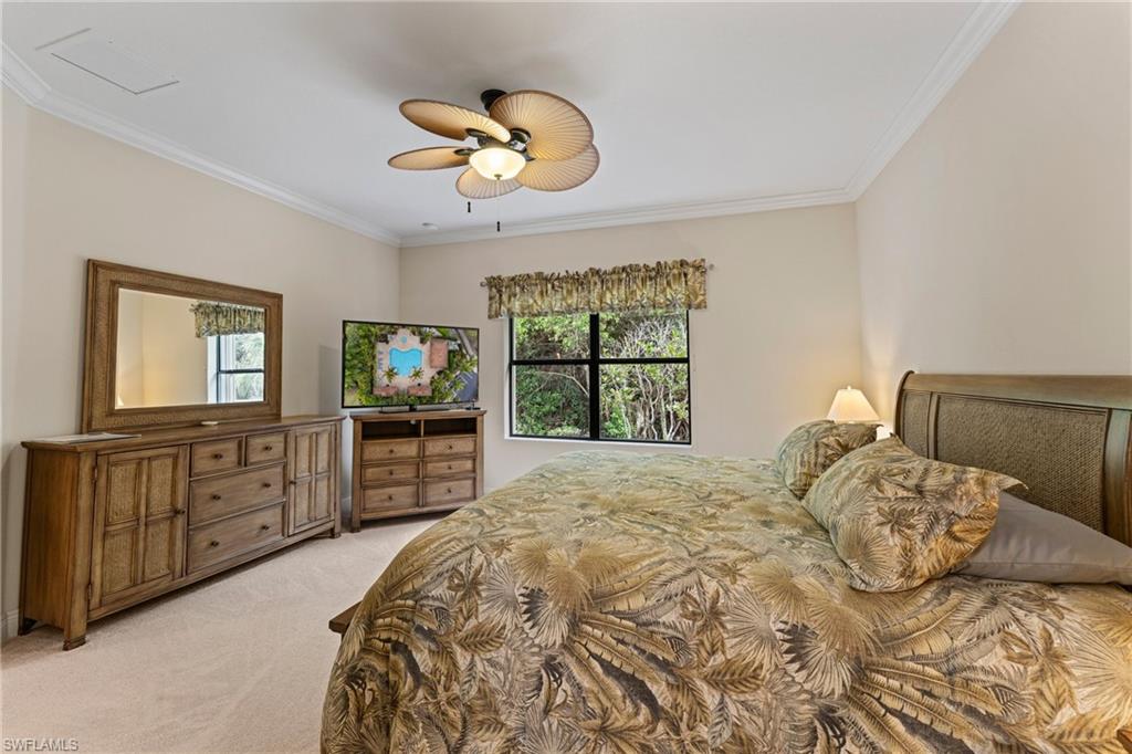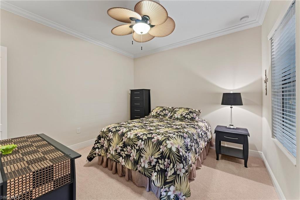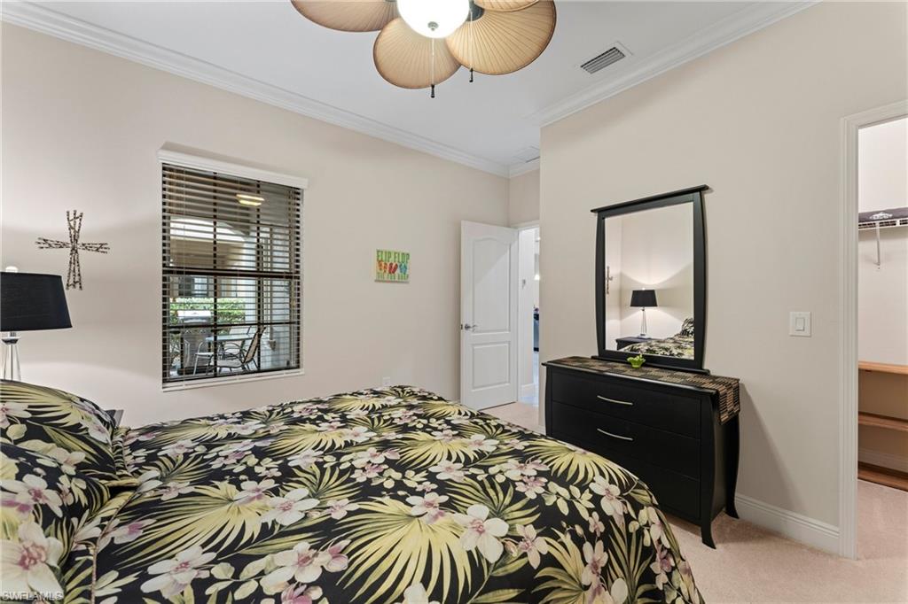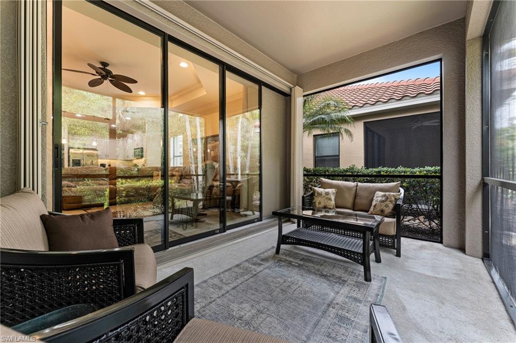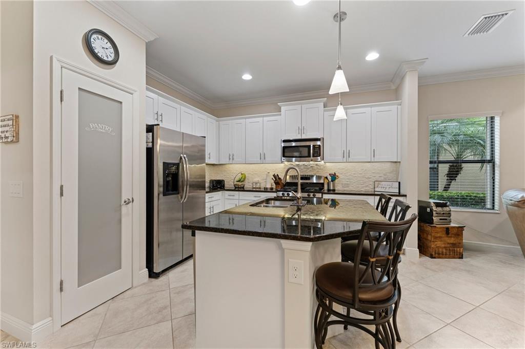 The only home currently available in Villa Palmeras. Welcome to this beautifully maintained end-unit villa located in one of Estero’s most convenient gated communities. Built in 2013, this 2-bedroom plus den residence offers a bright, open great-room layout with tile flooring laid on the diagonal, crown molding throughout, and abundant natural light from its eastern exposure. The kitchen is both stylish and functional, featuring shaker cabinetry, granite countertops, tile backsplash, gas cooking, and a glass pantry door. The flexible den provides the perfect space for a home office or guest retreat. The primary suite includes a spacious walk-in closet with custom built-ins and a well-appointed bath with dual sinks. Step outside to the screened lanai overlooking a private preserve, offering peaceful mornings and shaded afternoons. Notable upgrades include a new AC system (2023), new garage door opener, and accordion shutters throughout for added peace of mind. Villa Palmeras is a gated community with a resort-style pool and spa, ideally located just minutes to Coconut Point, dining, shopping, RSW Airport, and Southwest Florida’s beaches. Light & Bright End-unit | Preserve view | Gated community | Only listing available