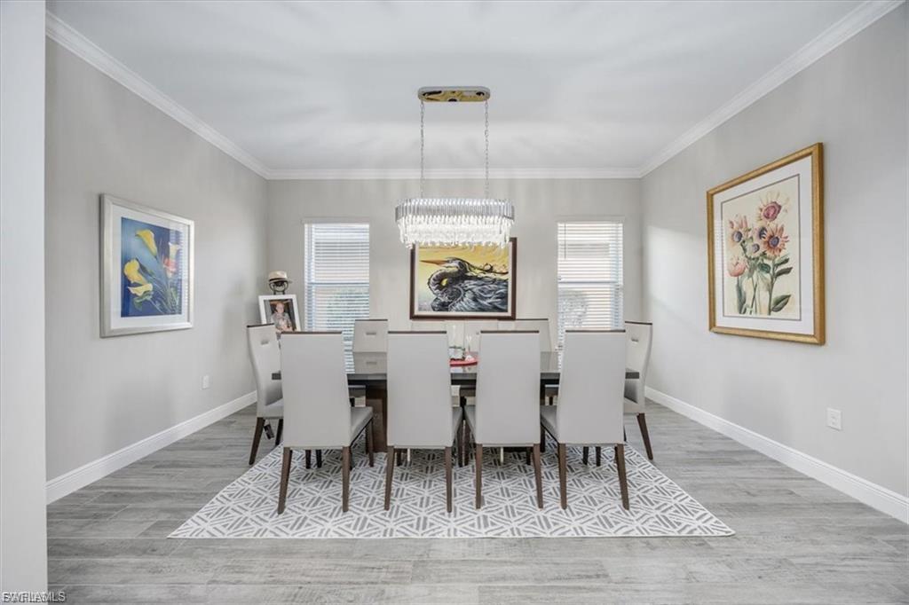 Welcome to 3845 Helmsman Drive in Naples, Florida. This stunning “Pennant Model” home features West Indies-inspired architecture and luxury living. With 4 bedrooms and 3.5 bathrooms, enjoy two en-suite bedrooms, a versatile guest suite, and a master retreat with a spa-like bathroom, complete with an oval soaking tub and spacious closet. The gourmet kitchen boasts an impressive 11'6" island, granite countertops, custom cabinetry, and a walk-in pantry, flowing into an expansive great room with a fireplace. The formal dining room, highlighted by a custom chandelier, complements the inviting study with French doors. Stylish touches include modern wood-look porcelain tile, crown molding, and custom carpentry. Step outside to a screened lanai with serene wooded preserve views, protected by an electric hurricane shutter and featuring a brick-paved patio—ideal for relaxation or entertaining. The 3-car garage offers ample storage with epoxy flooring. This gated community provides a lifestyle with resort-style amenities, including a pool, spa, clubhouse, fitness center, and playground. Family-friendly with access to top-rated schools, it's conveniently located near Gulf Coast beaches, golf courses, and fine dining. Move in and embrace the Naples, Florida lifestyle!