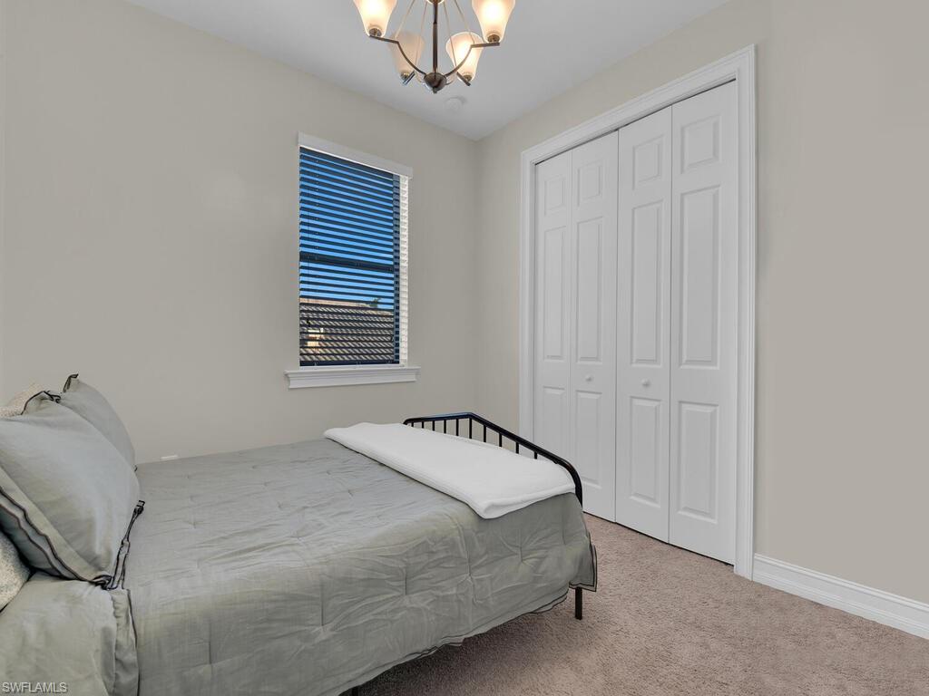 Welcome to Paloma of Bonita Springs. This exquisite Skylark model is perfectly designed for a growing family, offering four bedrooms plus a den and three-and-a-half bathrooms. With 3,328 square feet of living space, there is plenty of room for everyone to enjoy both comfort and privacy. Enter through the front door into a spacious living and dining area featuring soaring ceilings and beautiful 18-inch diagonal tile flooring. Toward the back of the home, you’ll find an oversized family room that opens to the lanai and a gourmet kitchen complete with white wood cabinetry, quartz countertops, a tile backsplash, and a large center island. Stainless steel appliances include a dishwasher, refrigerator with ice maker, cooktop, in-wall microwave, and oven. Upstairs, the primary suite features two walk-in closets and a luxurious en-suite bathroom with dual sinks, a soaking tub, a large shower, and a private water closet. Three additional bedrooms, two full bathrooms, and a bonus room complete the second floor. The extended lanai provides exceptional outdoor living with a custom pool featuring water elements, a full outdoor kitchen, and multiple seating areas—perfect for entertaining. Additional highlights include an indoor laundry room and a two-car garage. Paloma is a wonderful family-friendly community offering a clubhouse with a fitness center, billiards, and a community room. Amenities also include bocce, tennis courts, and a community pool. This home is truly a must-see for a large family seeking space, comfort, and resort-style living.
