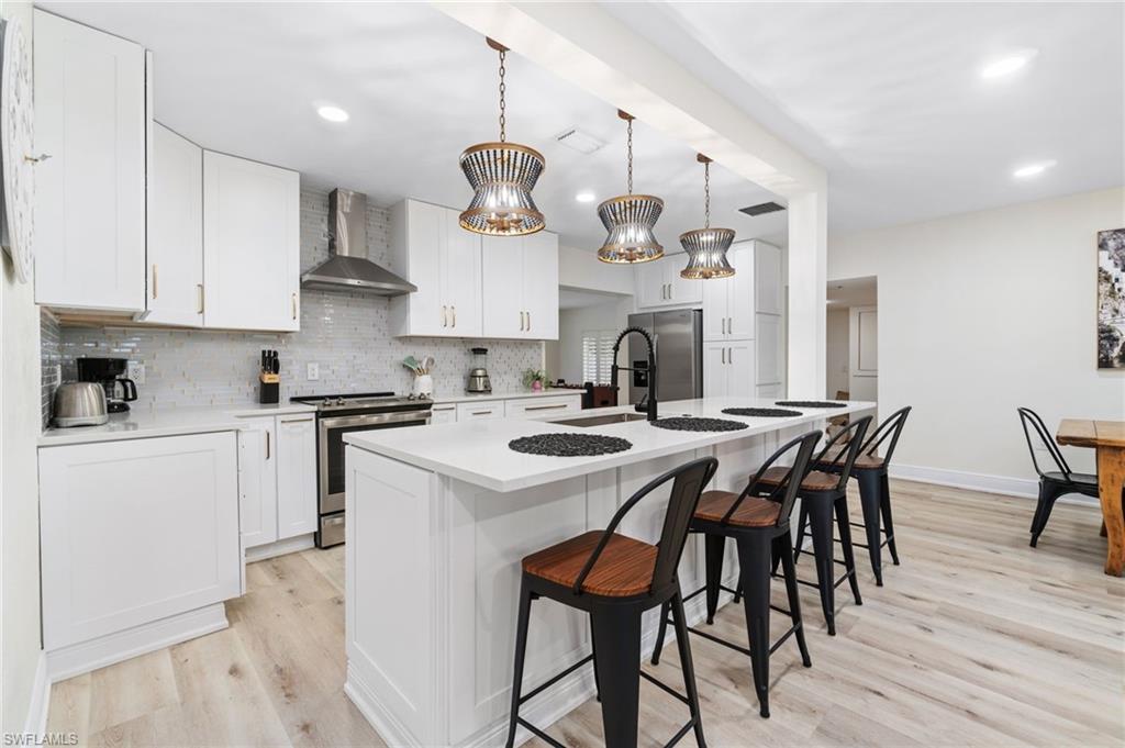 This fully updated pool home offers the space, flexibility, and lifestyle that make El Dorado Acres one of the most sought-after pockets of Bonita Springs — a rare opportunity to live west of 41, NOT IN A FLOOD ZONE, NO HOA, with room to breathe and immediate access to the very best of Southwest Florida. Located in the coveted west-of-41 corridor, this newly remodeled coastal-modern estate sits on an expansive double lot and delivers a perfect blend of style, comfort, and functionality. Upgraded with a new roof, new A/C system, and new water heater, this sprawling single-story layout offers over 3,000 square feet under air living featuring 4 large bedrooms plus a private office, 3 fully renovated bathrooms, a generous second large living room ideal for entertaining, and an oversized garage perfect for boat or RV storage — as well as the ideal setup for anyone who loves to work on projects, build, tinker, or create in a dedicated workshop-style garage space. Outside, the property includes a large driveway with ample parking and a fenced-in side driveway designed for boat or RV storage, giving you space and flexibility rarely found west of U.S. 41. The open floor plan flows seamlessly with wide-plank vinyl flooring and a beautifully updated eat-in kitchen with quartz countertops, custom white cabinetry, and all-new stainless-steel appliances. Ideally positioned in El Dorado Acres, this home enjoys unbeatable proximity to Gulf beaches, RSW airport, and is walking distance to restaurants and shopping, offering the ultimate combination of lifestyle, convenience, and coastal living. Set within El Dorado Acres, one of Bonita Springs’ most unique non-HOA communities, residents enjoy oversized lots, neighborhood charm, and the rare freedom to bring boats, RVs, and all their toys, privileges many gated neighborhoods simply don’t offer. The location places you minutes from Coconut Point Mall, the Hyatt Regency, the new Ritz-Carlton Residences, and Saltleaf Golf Preserve.