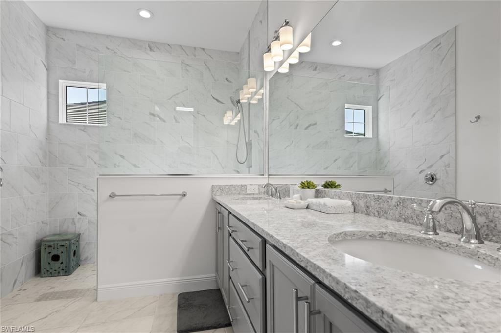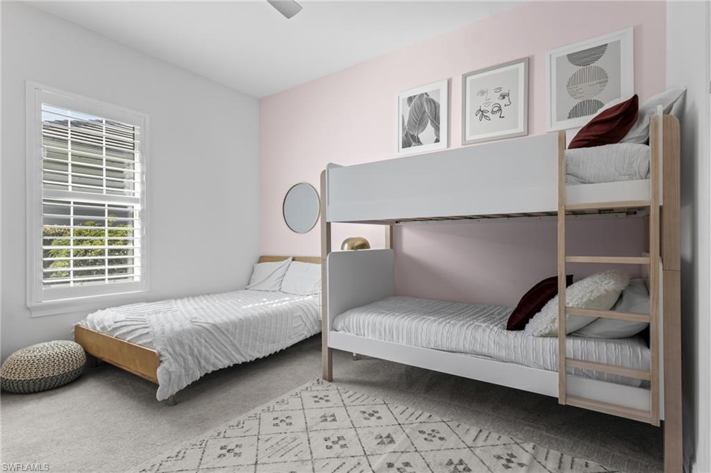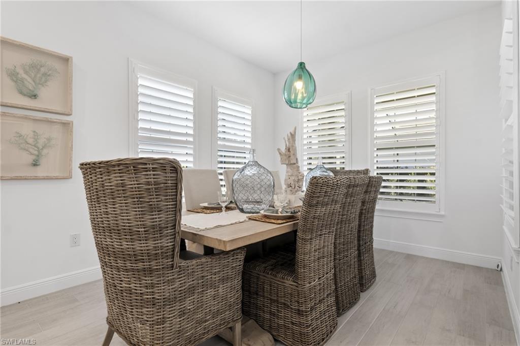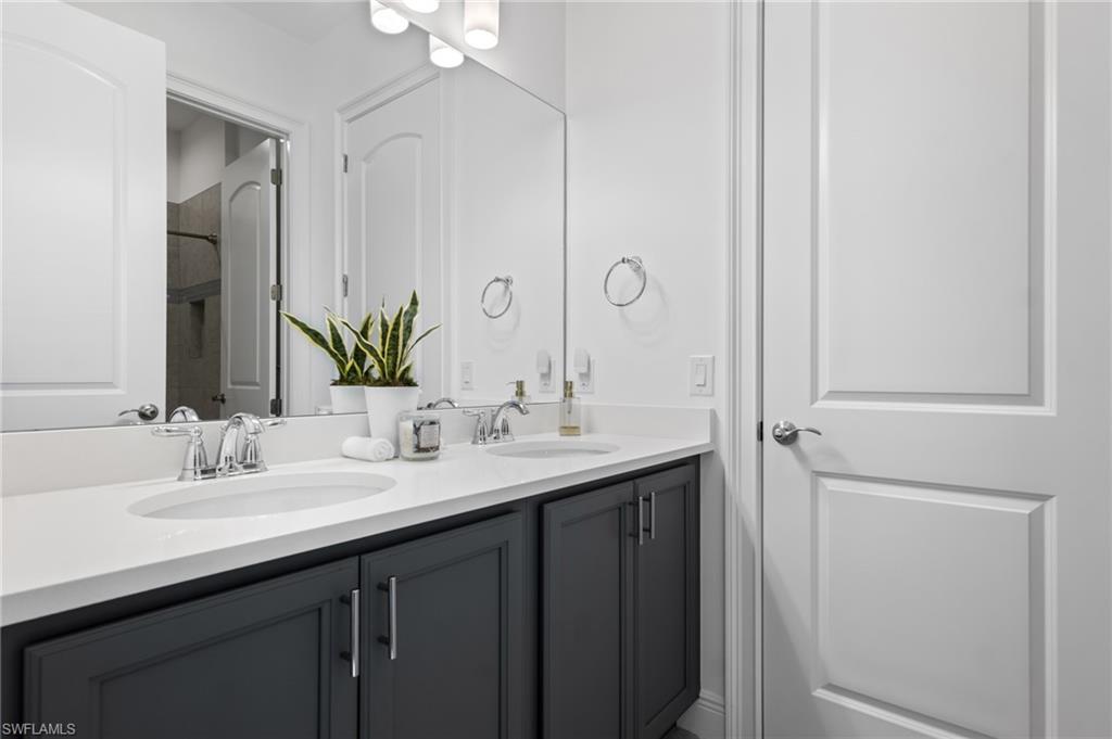 This stunning home, now elevated to exceptional luxury with over $300,000 in recent improvements, is move-in ready and offered fully furnished for immediate enjoyment in the prestigious gated community of Naples Reserve. Situated on a desirable corner lot with ample space for privacy and outdoor living, this 4-bedroom, 3.5-bath home (plus study/flex space in the open great-room design) blends sophisticated coastal elegance with resort-style functionality—perfect for vacations, effortless entertaining, or year-round paradise living in Southwest Florida. Enter to a bright, open layout featuring wood-look tile flooring throughout the main living areas, plush carpeting in the bedrooms, and plantation shutters on all windows that infuse a cool, breezy coastal vibe while providing excellent light control and privacy. The chef's kitchen shines with 42” white shaker-style Wellborn cabinets, gleaming quartz countertops and tile backsplash, an enormous center island ideal for gatherings, a walk-in pantry, and a full suite of stainless steel appliances. The seamless flow from kitchen to living and dining spaces ensures you're always part of the action when hosting. Additional highlights include impact-resistant windows and doors for peace of mind during Florida's seasons, a smart front-door lock for remote access, Taexx in-wall pest control system, large screen-mounted TVs in each bedroom, and a climate-controlled air-conditioned garage for year-round comfort. A convenient powder bath serves as both a guest half-bath and pool bath. The true showstopper is the transformed outdoor oasis: a breathtaking 46-foot saltwater pool with integrated spa, cascading waterfall, and lap-lane design for swimming laps or relaxed lounging; a fully equipped outdoor kitchen for al fresco dining; elegant marble lanai under a full screen enclosure; lush, mature landscaping that enhances curb appeal and ensures complete privacy; and a fenced side yard perfect for pets or play. A whole-house water filtration system adds everyday luxury, with a whole-house generator (buried tank) nearing completion for ultimate storm-ready reliability. Naples Reserve delivers an unparalleled resort lifestyle on 688 acres centered around a 125-acre Eagle Lake and interconnected freshwater lakes. Residents enjoy a zero-entry resort-style pool with lap lanes, kiddie pool, beach area, Tiki Bar, lakeside fire pit, Latitudes Café, state-of-the-art fitness center, indoor/outdoor dining, tennis and pickleball courts, bocce ball, beach volleyball, dog parks, miles of scenic trails, a boat ramp, complimentary kayaks, paddleboards, canoes, water bikes, community garden, and more—all designed for active, social, and casually awesome living. This turnkey gem offers quick close availability, allowing you to start embracing the Naples Reserve lifestyle without delay. Don't miss this rare opportunity to own a fully upgraded, furnished coastal retreat in one of Naples' most sought-after communities.