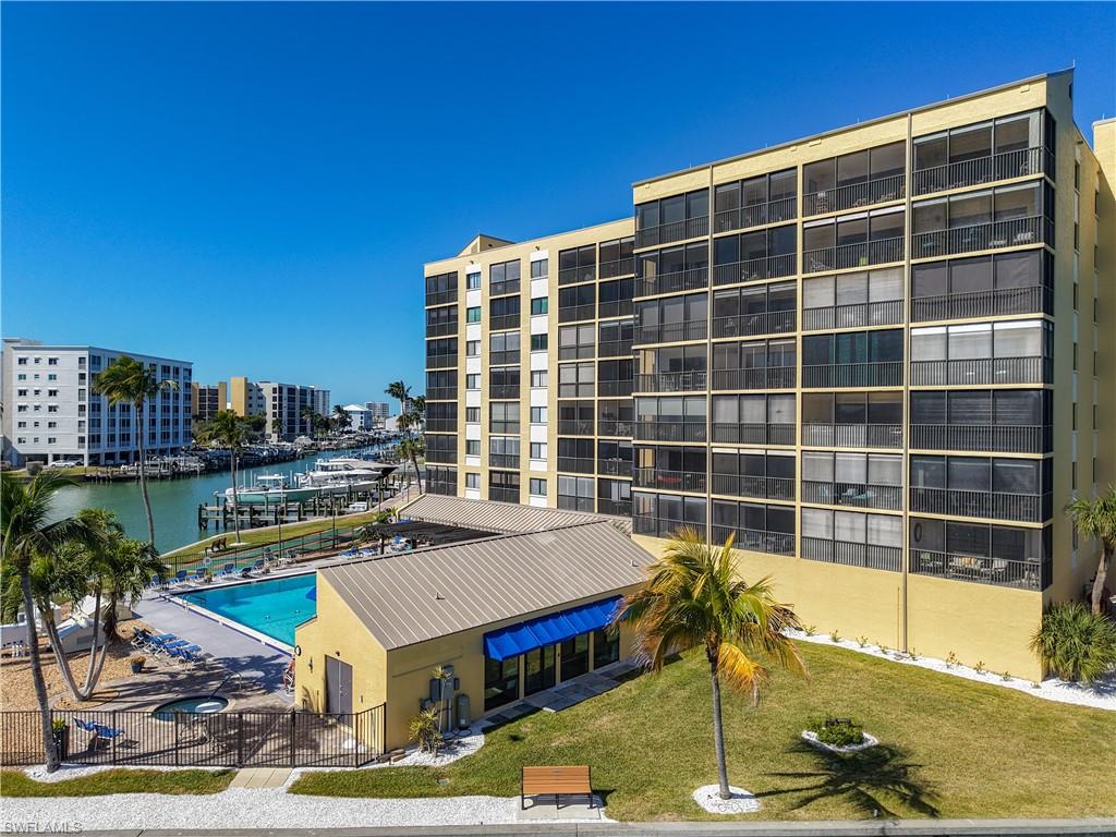 WATERFRONT! Won't find a deal like this again at this price ESPECIALLY BEING ON THE BAY with a gorgeous, unobstructed view. Move right in and at this price make renovations to put your personal touch. This has fantastic views of Estero Bay with a lot of entertainment as you watch from your Lanai all the Boating activity, the Manatees and Dolphins as they play. On the Lanai you have the perfect seat to watch the gorgeous Sunrises over the Bay. You will enjoy the beautiful resort style pool that also overlooks the Bay so you have some great views as you swim. Short walk to the Gulf to enjoy the beautiful white sandy Fort Myers Beach. Right down the street is Santini Plaza for Dining and Shopping. Living on the South End is peaceful and if you don't want to drive just catch the Trolley at the end of Lenell to go to Times Square and enjoy the many restaurants.