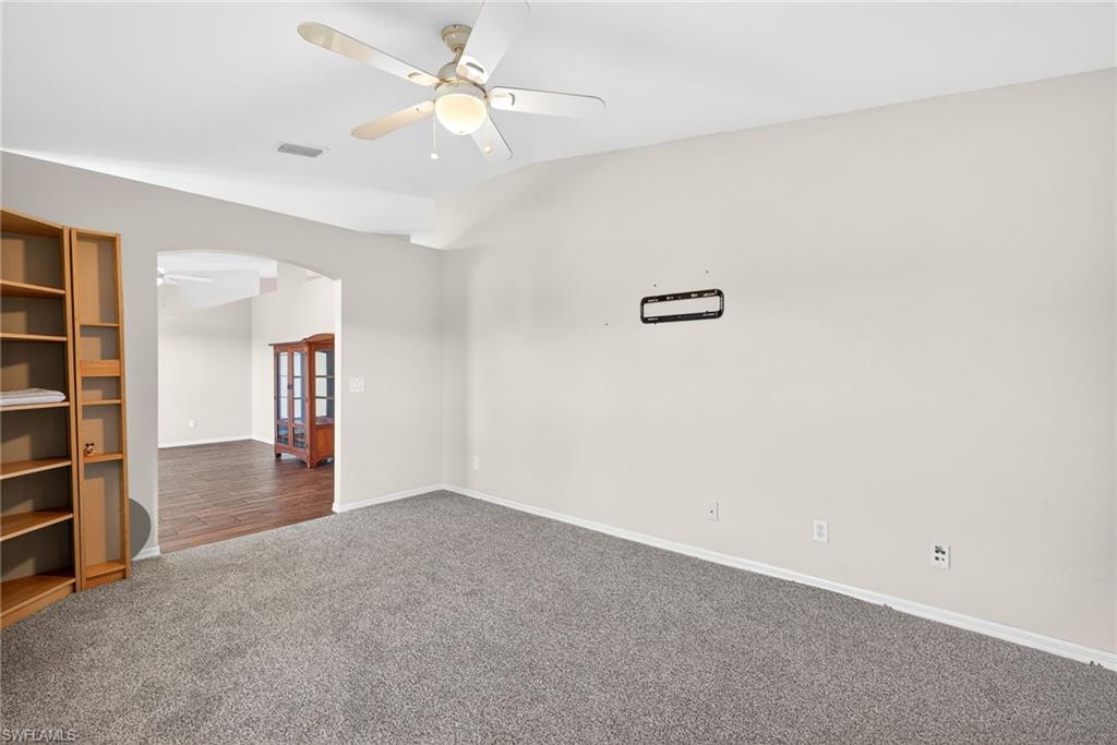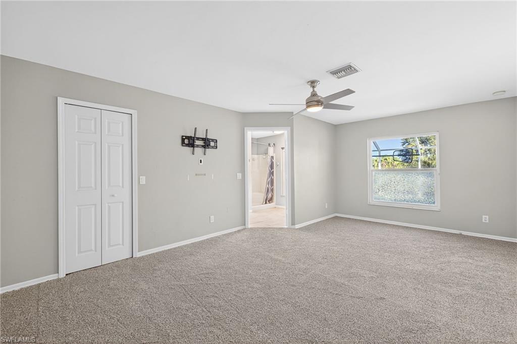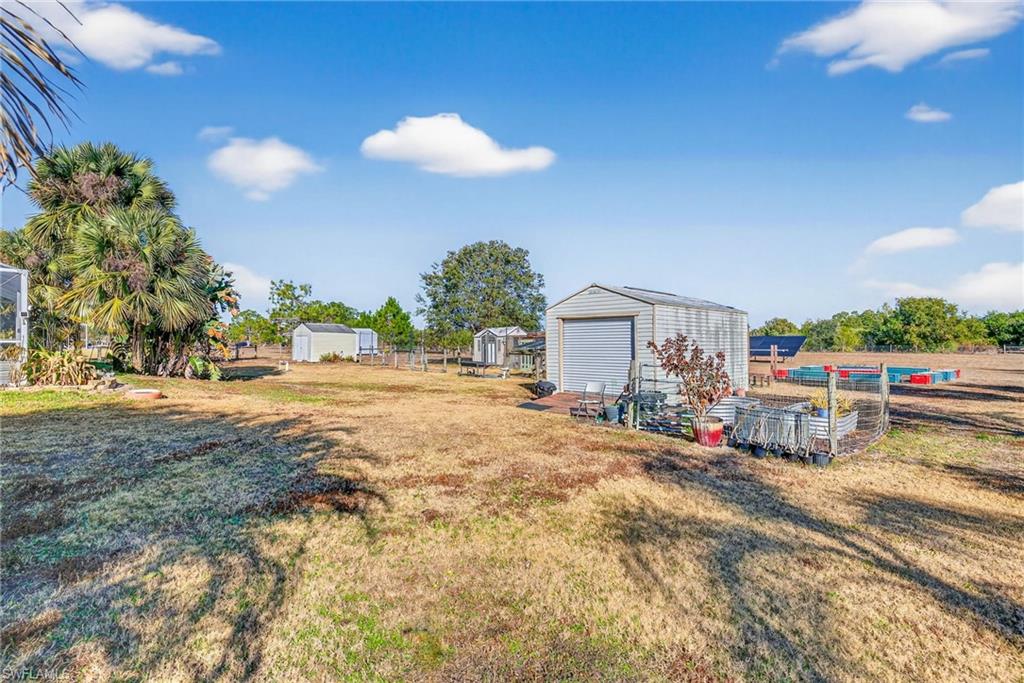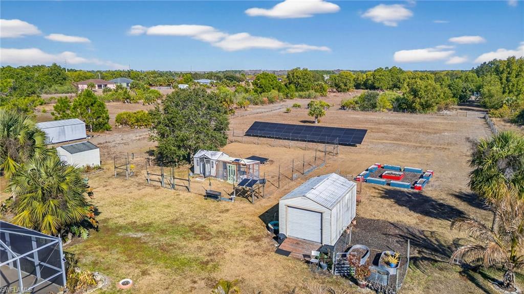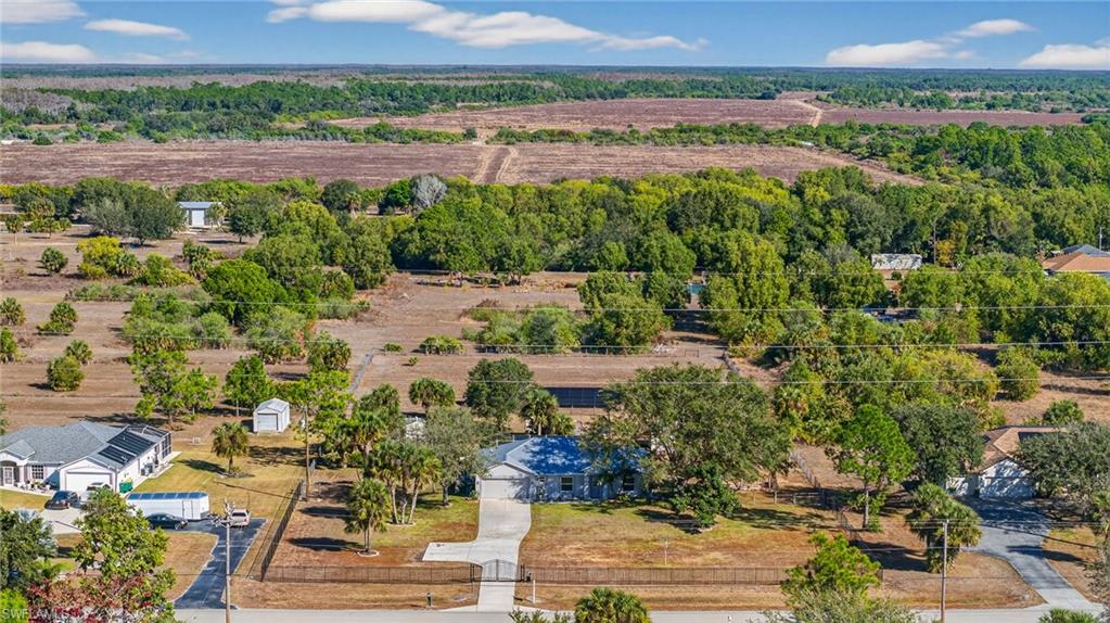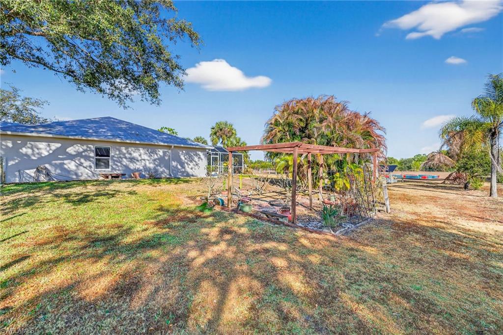 Beautiful 3 Bedroom Plus a Den, 2 Bathroom POOL HOME sitting on 2.73 Acres, located in the heart of Golden Gate Estates, FENCED and GATED with Keypad Entry System. This concrete block home offers the perfect blend of country freedom and modern luxury. Major Upgrades: Metal Roof (2018), New HVAC (2023), New Water Heater (2019) New pool pump, New Carpet, Refrigerator, Microwave, Fence, Gate and Impact Windows. The property is a sustainable oasis with OWNED Solar Panels resulting in a $22 +or- per month electric power bill for most months! YES THIS IS CORRECT, AND Very RARE “THE SELLER PAID OFF THE 48 PANEL SOLAR PANEL BALANCE” This would be almost like living “OFF GRID” because this home has, its own SEPTIC SYSTEM, WELL WATER, HUGE CHICKEN COOP AREA (with a separate solar set up), and a LARGE GARDEN AREA towards the back of the property, FULLY CLEARED and USABLE LOT. The interior features a split-bedroom layout, granite counters, and volume ceilings, a formal dining room, extra Den that can be used as another bedroom/office or home gym, a primary suite with a walk-in closet, en-suite bathroom with a soaking tub and walk-in shower and the living room area is equipped with a surround sound system. Outside, the fully fenced lot includes a security gate, an in-ground pool with screened pool cage, under the roof lanai area. No HOA restrictions means plenty of room for your "toys." (BOAT, RV, ATV) Enjoy peace and quiet and still just a short drive to the Seminole Casino, shopping, dining and beautiful Naples beaches.
