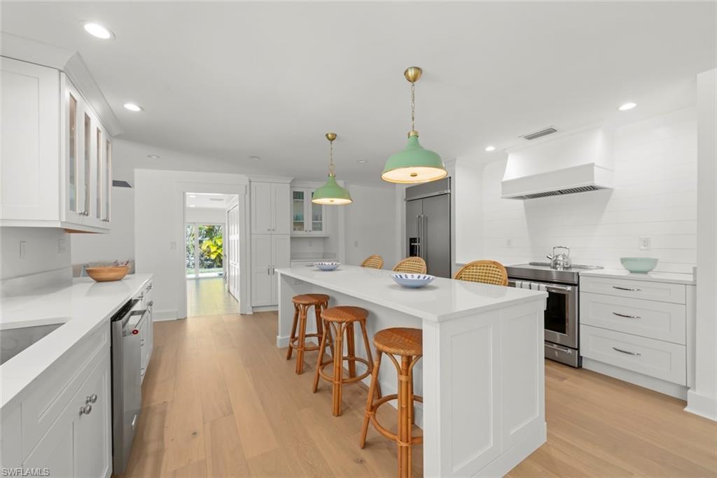 Beautiful East-End Sanibel retreat offering Gulf access, a private tropical pool setting, and convenient beach access just steps away. This charming 3BD/2BA home has been completely remodeled and thoughtfully reinvented, blending modern coastal elegance with relaxed island living. The updated kitchen serves as the heart of the home, featuring custom cabinetry, quartz countertops, designer lighting, new appliances, and a built-in wall pantry. An open split floor plan provides comfortable living and easy entertaining, with a spacious family room and full bath conveniently located just off the pool and lanai. The home offers abundant storage throughout, including a large storage closet off the family room and an expansive laundry room with a built-in desk/work area. Outdoor living shines with a screened lanai and sparkling pool surrounded by lush tropical landscaping, creating a private island retreat on an oversized 19,000+ sq. ft fenced lot. The peaceful canal setting offers Gulf access and exceptional privacy, while beach access is just moments away via the charming footbridge at the end of Anchor Drive.