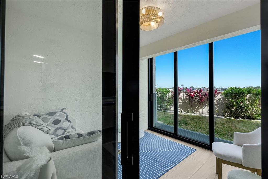 Waterfront Living at Its Best at Sportsmans Cove Yacht & Racquet Club Enjoy sparkling bay views and coastal breezes from this beautifully maintained cozy 1BR/1BA condo on San Carlos Island, just minutes from Fort Myers Beach. Perfect as a seasonal retreat, investment property, or full-time residence. The bright white kitchen offers soft-close cabinets, stainless steel appliances, granite countertops and recessed lighting throughout unit. The spacious living area opens to a glass-enclosed rear lanai with direct access to the community pool, backyard, docks, and bay. In-unit washer and dryer. Amenities include tennis/pickleball courts, heated pool, guest parking, boat ramp, fishing pier with cleaning station, and on-site boat/jet ski storage yard! Impact windows and doors plus a 48" flood barrier wall provides added peace of mind.