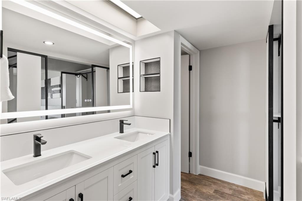 Fully Remodeled & Beautifully Furnished Lakefront Living! Discover refined coastal living a stunningly reimagined 2-bedroom, 2-bathroom residence where breathtaking long lake views greet you from every room. This home offers an effortless, move-in ready lifestyle with no detail overlooked. Every inch of this home has been thoughtfully remodeled with attention to both design and comfort. From the brand-new flooring and elegantly updated bathrooms to the custom kitchen featuring all new stainless-steel appliances, no detail has been overlooked. The home also features a new electric panel and a 2019 A/C system, ensuring modern comfort and peace of mind. The home is being offered fully furnished with tasteful, brand-new pieces, allowing you to settle in immediately — just bring your toothbrush. Step out onto your private lanai and enjoy tranquil mornings and golden sunset reflections over the lake! A daily reminder of why you chose this special place to call home. Nestled within a quiet, beautifully maintained community of Bonita Pines, you’ll enjoy exclusive access to a pool, tennis courts, pickleball and lush, landscaped grounds that invite a relaxed and active Florida lifestyle. Perfectly located just moments from Bonita’s pristine beaches, charming local shops, dining, and top-rated golf, this residence is ideal as a seasonal retreat, investment property, or full-time sanctuary. If you’ve been searching for a home that combines serene surroundings, and true turn-key convenience, look no further. This is the one!