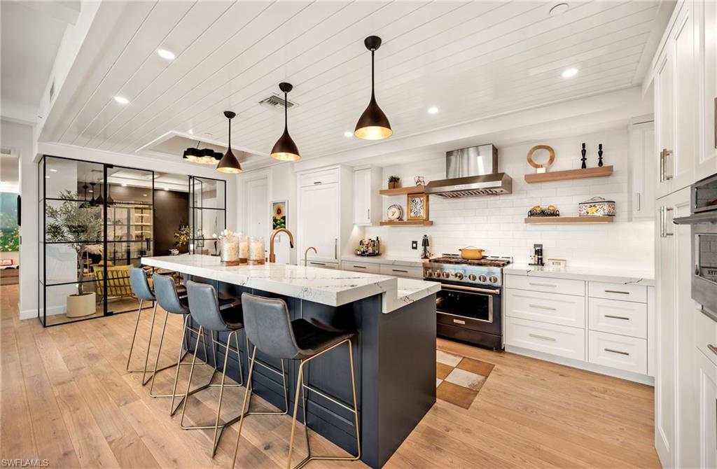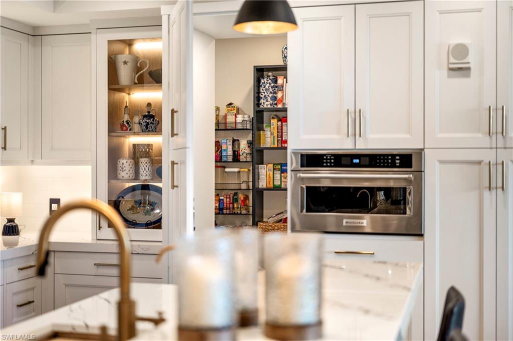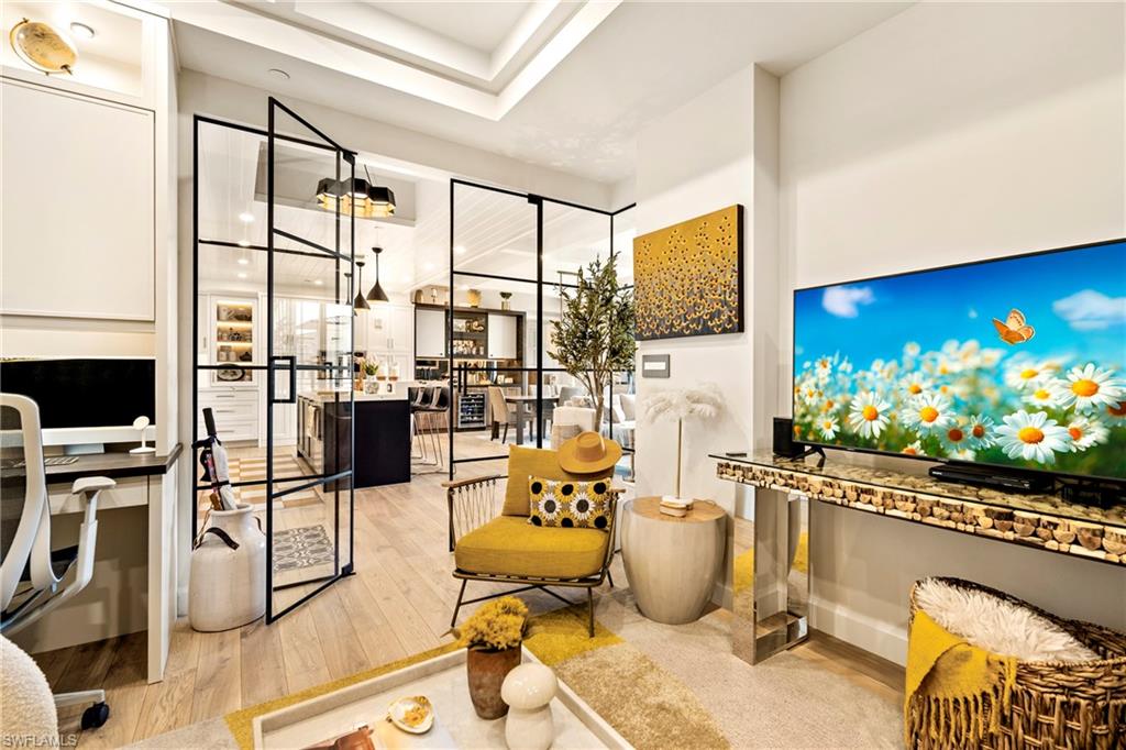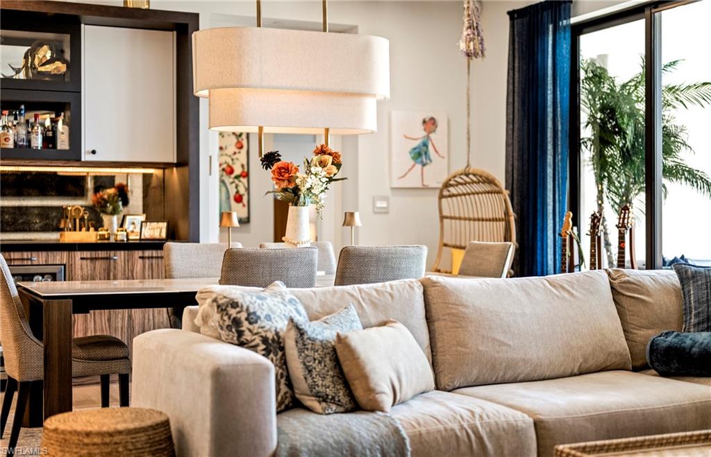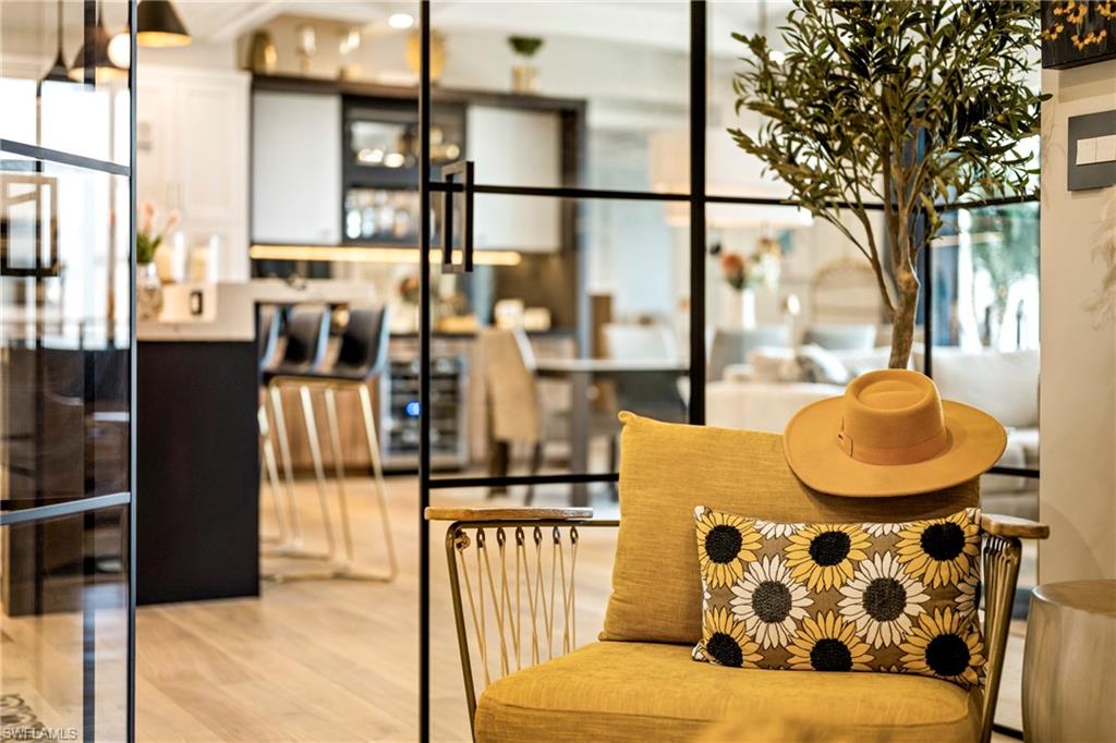 Experience elevated downtown living in this south-facing residence at Eleven Eleven Central, ideally located just ¾ of a mile from the stunning Gulf beaches. Offering 3 bedrooms plus a den and 3.5 bathrooms, this exceptional home is the most upgraded residence within the entire community. No detail was overlooked and nothing is builder grade. The thoughtfully designed custom kitchen showcases premium finishes, bespoke cabinetry, and a hidden coffee bar, seamlessly blending luxury and functionality. Entertaining is effortless with a custom built wet bar and beautifully curated living spaces throughout. Designer bathrooms feature floating vanities, custom tilework, and refined modern finishes, creating a sophisticated and serene atmosphere. The spacious lanai serves as a true outdoor extension of the home, complete with an outdoor kitchen and built-in gas grill. Enjoy tranquil, picturesque views overlooking the lushly landscaped community park and courtyard from this perfectly positioned residence. This home also boasts two assigned parking spots within the gated garage. Located close to world-class beaches, dining, shopping, and the vibrant lifestyle of Downtown Naples, this home blends luxury, location, and livability in one exceptional offering. Eleven Eleven Central offers unparalleled amenities, including a state-of-the-art fitness center with two massage rooms, a social room for gatherings, a game room, private movie theater, and a beautifully landscaped community park featuring a fenced dog area. A private community shuttle provides convenient transportation around downtown, while six rentable guest suites offer ideal accommodations for visiting family and friends. This is more than just a condominium... it’s a lifestyle. Don’t miss this rare opportunity to own in one of Naples’ most desirable communities.
