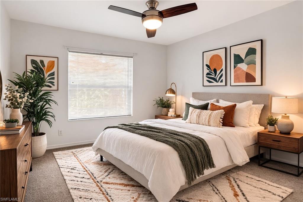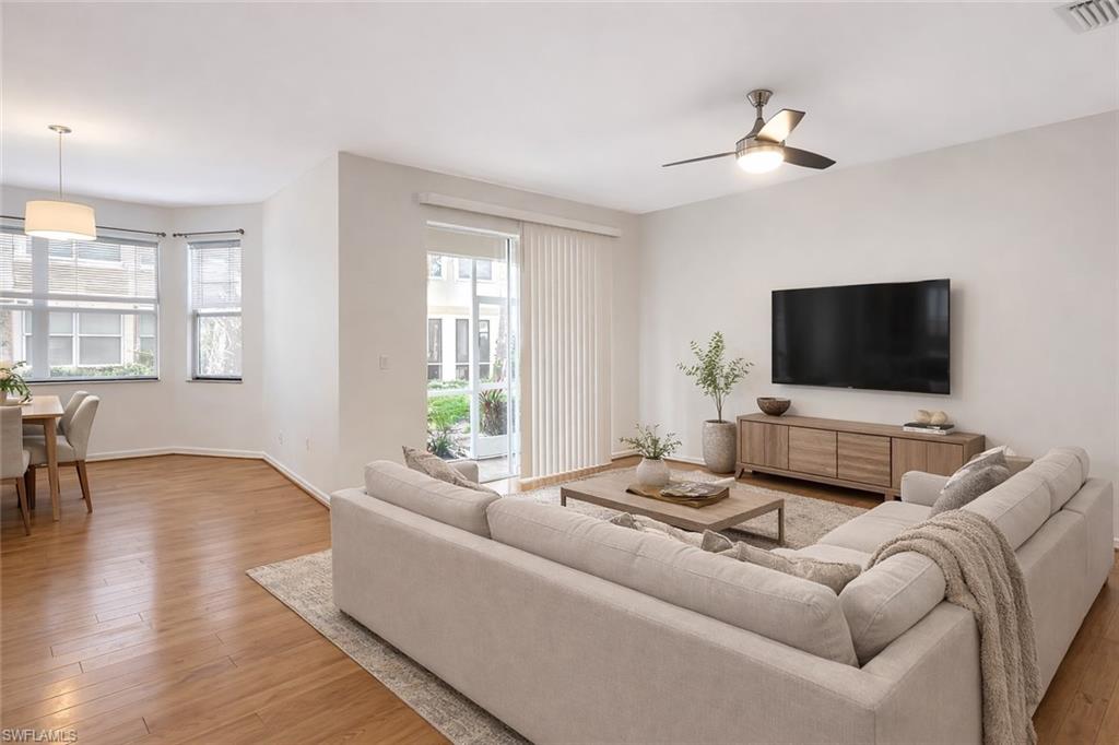READY FOR NEW OWNERS! Nestled in the desirable Rookery Pointe community within Heatherstone, this meticulously maintained two story townhouse offers 3 bedrooms, 2.5 bathrooms, and 1,820 sqft of comfortable living space. With a versatile 1 car garage suitable for parking or additional storage, this home presents an exceptional opportunity as a primary residence or investment property. A NEW ROOF has been installed and the special assessments for this unit have been PAID, offering peace of mind for the next owner. Its functional layout, fresh feel, and prime location make it a standout choice. From the moment you arrive, the beautifully landscaped curb appeal welcomes you. Step inside to a spacious foyer with a convenient 1/2 bath on the first floor. The OPEN CONCEPT main living area is designed for effortless living and entertaining, filled with natural light and featuring hardwood and tile flooring throughout the main level. Upstairs you will find fresh carpet that adds warmth and comfort to the private living spaces. The stylish yet practical kitchen features white cabinetry, solid surface countertops, and 2024 stainless steel appliances, making it ideal for everyday living or hosting guests. The living and dining areas flow seamlessly together, creating a bright and inviting atmosphere. Large sliding glass doors lead to the screened lanai with peaceful landscaped views and desirable northern exposure, perfect for enjoying morning coffee or relaxing in the evening. Upstairs, the OVERSIZED primary bedroom serves as a peaceful retreat with a cozy seating area, a spacious walk in closet, and a private ensuite bathroom. The ensuite features a walk in shower, soaking tub, dual sink vanity, and quartz countertops. Two additional bedrooms are generously sized with ample closet space. Both the primary and guest bathrooms upstairs feature QUARTZ countertops for a clean and modern feel. A dedicated in unit laundry room with an overhead storage rack adds convenience and organization. Residents of Rookery Pointe enjoy access to excellent community amenities including tennis and pickleball courts, a lap pool, clubhouse, and more! Conveniently located near RSW Airport, Gulf Coast Town Center, shopping, dining, and entertainment, this home offers the perfect combination of comfort, location, and lifestyle. The only thing it's missing is YOU! Schedule your private showing today.