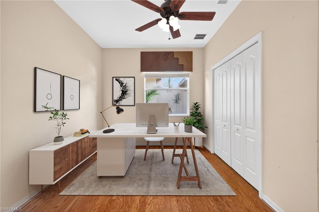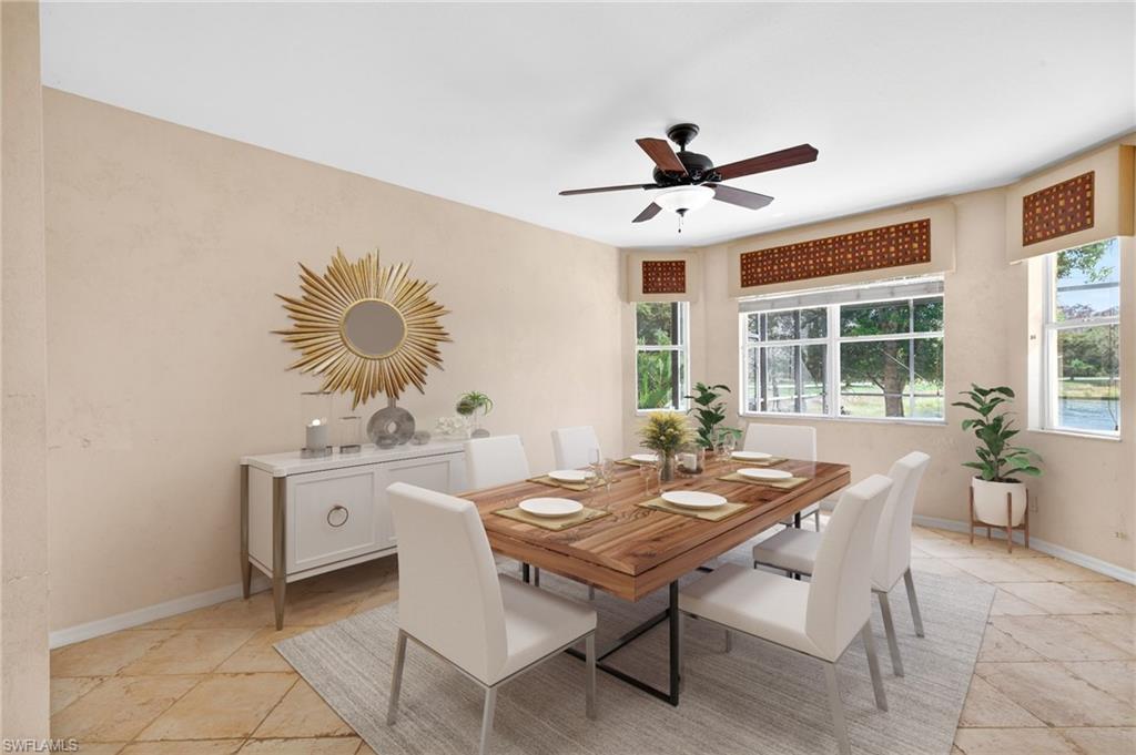 Welcome home to Bella Terra in Estero Florida! The development offers a very active clubhouse with activities for all ages. It seems that the calendar is always full of different things to do at the clubhouse. Location is close to all amenities of Estero, shopping, Florida Gulf Coast University, outlet Malls and Gulf Coast Town Center. Ardore Lane is located on a low volume street within the development as well. There is a lake behind the home that offers relaxation by the pool and front row to wild life by and on the lake. This home offers 3 bedrooms, 2 bathrooms, formal dining area and breakfast room as well. The pool area is spacious with room for outdoor living furniture and amenities. The fees in this development are low for the area as well. Make it a point to put this property on your list to view and discover your home in Bella Terra Some photos are virtually staged