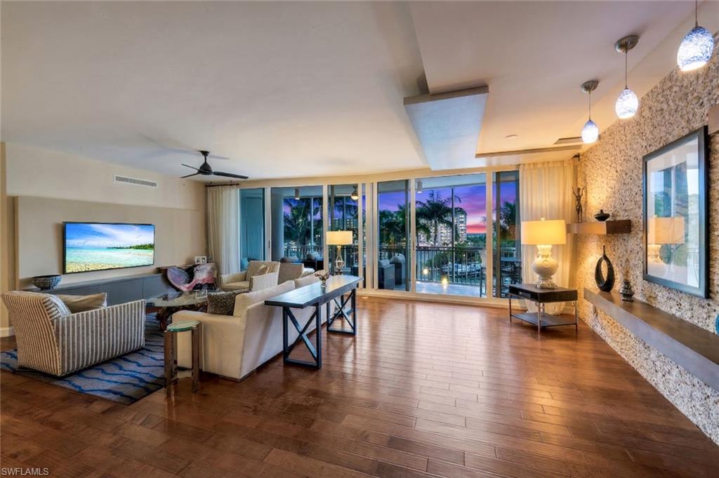 Experience elevated coastal living at AQUA at Pelican Isle, one of North Naples’ most exclusive luxury waterfront towers. This spacious 3,590 sq. ft. residence offers a rare opportunity to own a beautifully designed, Gulf-facing condominium positioned to capture sweeping views of the marina, mangroves, and the Gulf beyond—without overlooking parking areas or close neighboring buildings. Designed with a desirable front-to-back floor plan, the residence features two expansive balconies that invite seamless indoor-outdoor living. Start your mornings overlooking vibrant landscape over the newly manicured Kinsale Golf course and end each evening with spectacular Gulf sunsets and afterglows from your private balcony overlooking a peaceful yacht harbor. Dolphins, manatees, and passing boats create a constantly changing waterfront backdrop. Originally built as a model residence by the renowned Antonacci Design Group, this home showcases refined contemporary coastal design with luxury finishes and architectural details throughout. The residence includes 4 bedrooms plus a den, 4 full bathrooms, and two secured garage parking spaces, and is offered furnished, making it ideal for a seasonal resident seeking a move-in-ready Naples retreat. A private elevator vestibule entry welcomes you into a sophisticated interior highlighted by elegant wood flooring, custom Italian cabinetry, and thoughtfully curated design elements that blend comfort with luxury. Residents of AQUA enjoy the privacy of a low-density luxury tower combined with an exceptional collection of resort-style amenities. The community features a private marina with boat slips, cabanas, and direct Gulf access, along with kayaks for exploring the surrounding waterways. Additional amenities include a concierge attended lobby with 24/7 security, fitness center with sauna and steam rooms, theater, billiards lounge with golf simulator and bar, two grand social rooms, and beautifully designed outdoor gathering spaces. Outdoors, enjoy the resort-style pool and spa areas, grills stations, marina pavilion, fire pits, and a Sky Lounge—perfect for entertaining or simply relaxing while taking in the waterfront setting. AQUA is also pet-friendly with dedicated dog park areas. For those seeking an elevated club lifestyle, optional memberships are available next door at Pelican Isle Yacht Club, offering waterfront dining, tennis, pickleball, instructed fitness, and a shuttle boat to the beach. Golf enthusiasts may also consider opportunities at the newly opened Kinsale Golf Club, an exclusive course for 250 members. Combining expansive living space, breathtaking waterfront views, and one of Naples’ most refined amenity offerings, this residence delivers a truly exceptional luxury coastal lifestyle in North Naples.
