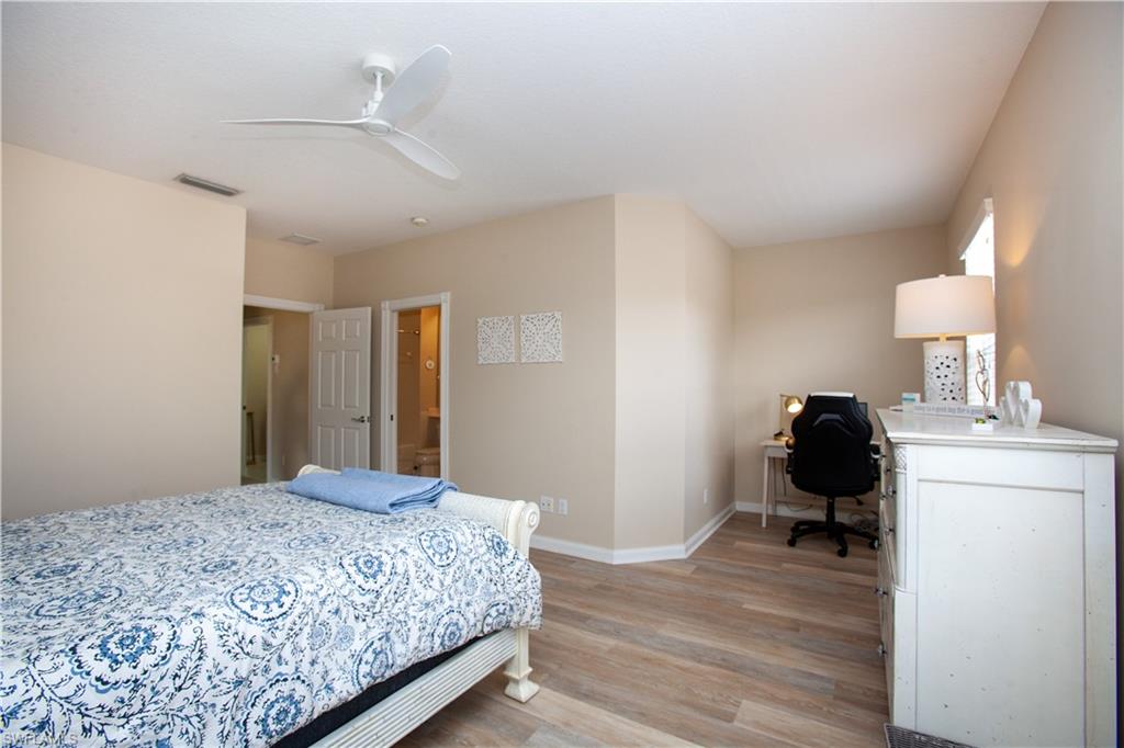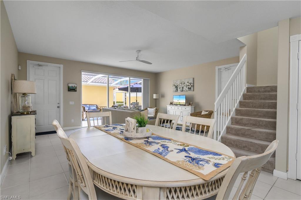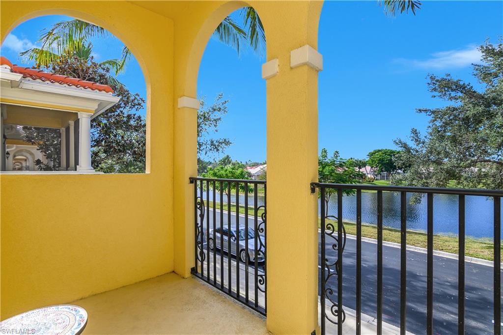 Welcome to luxury coastal living in the gated community of San Remo, just a short drive from the white-sand shores of Bonita Beach. This meticulously maintained townhome offers nearly 1,900 square feet of living space and a desirable open floor plan designed for comfort and entertaining. The first floor features a spacious kitchen with newer stainless-steel appliances, seamlessly flowing into a large living area with glass sliders that open to a generous screened lanai — perfect for enjoying Southwest Florida’s indoor-outdoor lifestyle. Also on the first floor are a bedroom that can be converted into a den, full bathroom and a charming front porch overlooking a tranquil lake. Upstairs, the expansive primary suite includes a large ensuite bath and private balcony, while the spacious second bedroom offers its own bathroom for added privacy. A conveniently located laundry room with new washer and dryer sits between the two bedrooms. Additional updates include a newer air-conditioning system and a two-car garage. Residents enjoy resort-style amenities including a pool, fitness center, tennis and pickleball courts, all within a beautifully maintained gated community close to shopping, dining and entertainment in Bonita Springs.