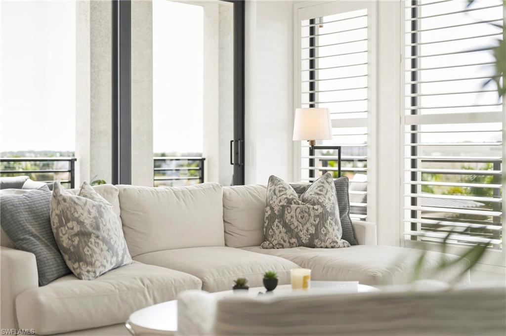 Experience elevated downtown living in this beautifully appointed fifth-floor, south-facing residence in the heart of Naples. Offering 1,476 square feet, this light-filled home features 2 bedrooms and 2 bathrooms, with floor to ceiling windows throughout that showcase the natural light and are complemented by elegant plantation shutters. Step outside to your expansive wraparound lanai, perfect for enjoying sunny southern exposure and seamless indoor-outdoor living. This residence is being offered completely furnished, making it truly move-in ready. Located in the main building of Eleven Eleven Central, you’ll enjoy an unbeatable location just ¾ of a mile to the pristine Gulf beaches and less than half a mile to world famous Fifth Avenue South, known for its premier dining, shopping, and entertainment. Eleven Eleven Central is one of the most amenity rich communities in downtown Naples, featuring a resort-style pool with fire pits, a state-of-the-art fitness center, social room, game room, private movie theater, bocce courts, putting green, hammock lawn, and a fenced dog park. Residents also enjoy the convenience of a private shuttle service to take you around town, six rentable guest suites for overflow accommodations, and on-site dining including an Italian restaurant and coffee shop. This is downtown Naples living at its finest—offering luxury, convenience, and lifestyle all in one exceptional residence.