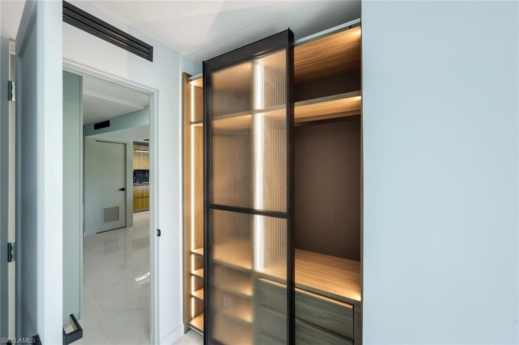Exquisitely remodeled second-floor condominium in the highly desirable Hidden Lake Villas community of Park Shore. This refined residence features hurricane-impact doors and windows and has no known history of flooding. Flood insurance is not currently required. Completely new layout, new electrical wiring, new plumbing pipes, new a/c ducts, 100% Italian Cabinetry and the countertops are 90% Italian materials. Thoughtfully renovated with permits, the interior showcases a sophisticated, open-concept design with elevated finishes throughout. The designer kitchen features Italian cabinetry, premium countertops, and newer appliances, seamlessly flowing into the main living space. Custom wall panel accents and a distinctive pop-up minibar create a stylish and functional environment ideal for both everyday living and entertaining. Elegant Italian tile flooring extends throughout the residence, enhancing its modern appeal. The primary and guest bathrooms have been fully updated with contemporary finishes. The primary suite offers a double vanity (which other units don't have in the community), Japanese Toilets with bidets, and a walk-in shower, providing a spa-inspired feel. Additional enhancements include reimagined closet spaces with custom built-ins and added storage. Washer and dryer hookup is available within the unit. Hidden Lake Villas offers a resort-style setting with amenities including pickleball and tennis courts, a heated pool, and a fitness center, all surrounded by lush landscaping. The community currently has no known assessments. Ideally located less than one mile from the beach, Venetian Village, and Waterside Shops, this property offers convenient access to upscale shopping and dining. Residents may join the Park Shore Beach Association, providing private beach access, parking, and facilities for an annual fee. Experience an elevated coastal lifestyle in one of Naples’ most desirable locations. Schedule your private showing today. Bedrooms and Living room TV are virtually Staged.