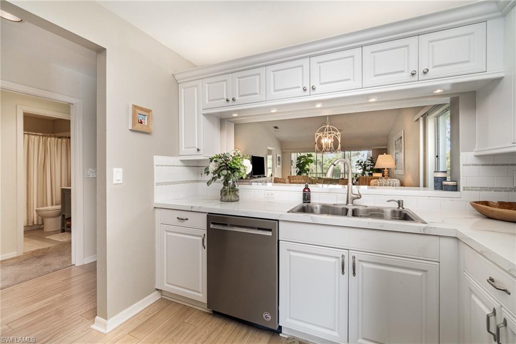 Nestled in the highly sought-after North Naples area, this peaceful retreat offers an exceptional lifestyle just moments from Barefoot Beach and Vanderbilt Beach. Located within a secure guard-gated community, this stunning corner residence overlooks a tranquil lake, creating a serene backdrop for everyday living. Boasting two spacious bedrooms, two modern baths, and a versatile den, this home is flooded with natural light thanks to expansive floor-to-ceiling windows in the living room and den. The thoughtful split floor plan ensures privacy and comfort, placing the primary suite with captivating lake views, a chic en-suite bathroom, and an oversized walk-in closet on one side. On the opposite side, the guest bedroom enjoys its own bath and a pocket door, perfect for added seclusion. Step inside to admire the elegant white oak floors that flow throughout the space, complementing the bright, airy atmosphere. The kitchen features a wide pantry and a convenient breakfast bar, ideal for casual dining or entertaining. Additional highlights include a spacious laundry room and abundant closet space designed to meet all your storage needs. Outside, the wide screened lanai and deep covered front porch invite you to savor morning coffee or unwind during the gentle Florida evenings. The lush tropical landscaping enhances the beauty of this community, surrounding a main pool and clubhouse equipped with a fitness room. Residents enjoy access to two satellite pools, tennis and pickleball courts, and scenic paths perfect for biking and jogging—all within greater Imperial Golf Estates. The well-managed HOA provides peace of mind through excellent oversight and careful budgeting. Conveniently located just blocks from Highway 41, residents can easily explore Naples’ world-class dining and shopping options. Recognized by US News & World Report as the best place to live in both 2024 and 2025, Naples combines luxury and lifestyle effortlessly. Plus, the prestigious Gomez Tennis Academy right in the neighborhood adds to this community’s appeal. Priced at just $325,000, this home presents an incredible opportunity to embrace the Florida dream. Don’t miss the chance—make sure to check out the video walk-through today!