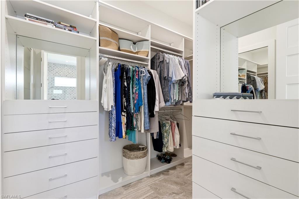 An elegant, newer construction single family home offering 3 bedrooms plus a den and 4 baths, on a lot and a half (75’ wide), providing exceptional space, privacy, and long-term value. Located on a desirable 500 block in Naples Park, it’s just a short walk or bike ride to the Wiggins Pass, Bluebill, and Vanderbilt beaches. Thoughtfully designed and beautifully finished, this home reflects the best of refined yet relaxed Naples living. Upon entering the home, you will appreciate the openness and thoughtfulness of the floorplan. Ten-foot ceilings throughout with 11.5-foot double tray ceilings in the foyer, kitchen, great room, den and primary suite. Wide-plank porcelain tile flooring, plantation shutters, and hurricane-impact windows and doors create a bright interior that is both stylish and storm-secure. The light-filled gourmet kitchen shines with white shaker cabinetry, honed Dolomite countertops, an induction cooktop, convection oven, and microwave drawer. A custom double-door pantry provides generous storage, while the built-in wine cooler and Sonos sound system make entertaining effortless. Smart-home wiring allows seamless control of lighting, sound, and systems with a simple tap. Each bedroom offers comfort and privacy, featuring California Closets and beautifully appointed bathrooms. The primary suite has an expansive double sink vanity, spacious walk-in shower, walk-in closet, and sliding glass doors opening directly to the lanai. The lanai includes an outdoor kitchen with a gas barbecue, refrigerator, sink and storage for your cooking needs. There is a large saltwater pool surrounded by lush colorful landscaping as well as a convenient outdoor pool bath and shower. Enjoy the outdoor SONOS system while enjoying your outdoor time. The lanai is protected by electric roll-down hurricane shutters, offering both convenience and peace of mind. Family and friends will enjoy playing on the built-in bocce court. There is a 2.5 car climate-controlled garage, with slat walls, storage and a built-in workbench. The home includes a whole house Generac generator powered by a 500-gallon buried gas tank, ensuring uninterrupted comfort year-round. Smart home technology allows most systems within the home to be managed from your phone, including the thermostat, pool / spa equipment, interior / exterior SONOS system, window / door security system, eleven exterior cameras, lanai hurricane screens, sprinkler system, garage door, garage split AC unit, and the whole house generator. Ideally located just minutes from beaches, shopping, dining, and entertainment, this home offers an exceptional lifestyle, equally suited as a full-time residence, seasonal retreat, or investment property. There is no HOA and, since located in Flood Zone X, flood insurance is optional.
