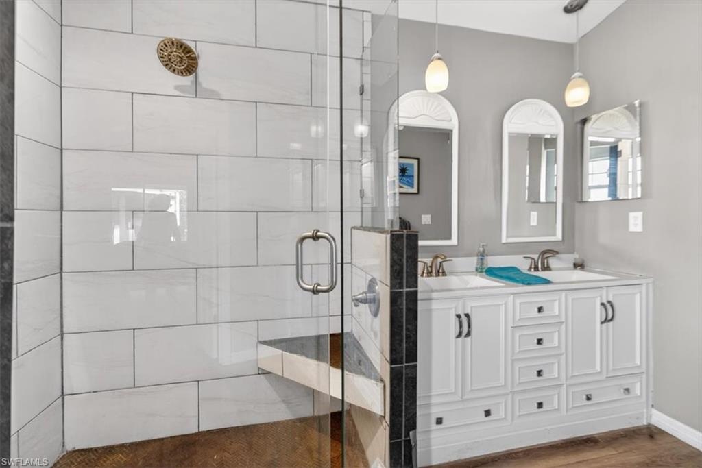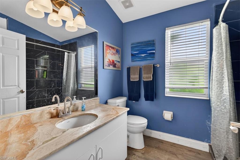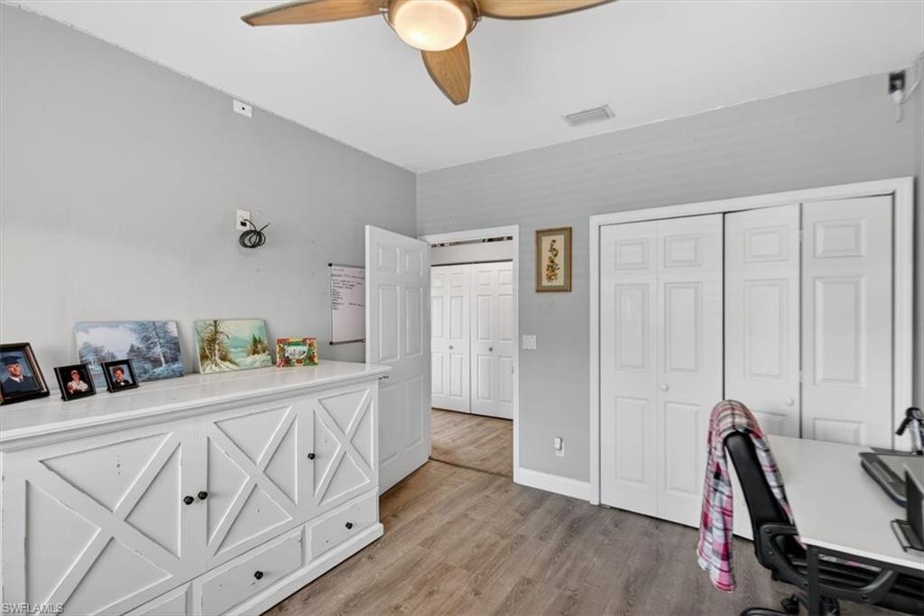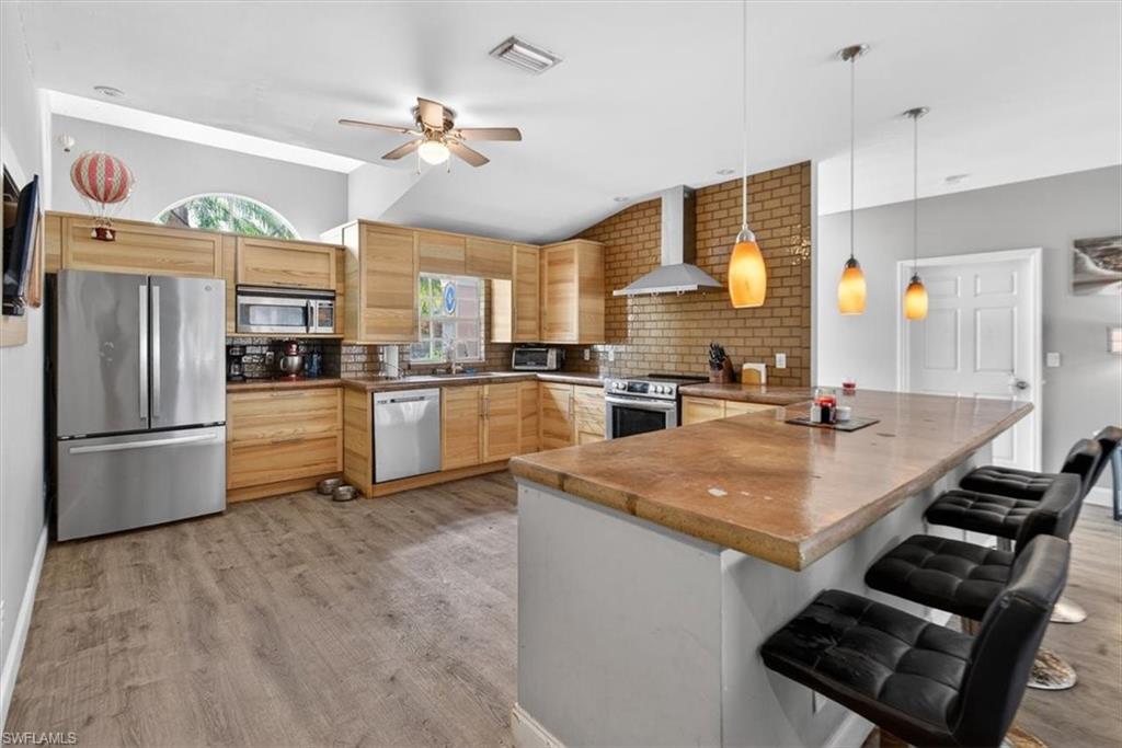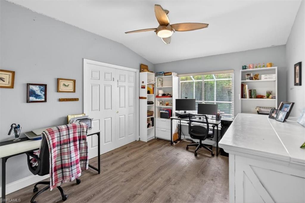 Beautiful 3 bedroom/2 bathroom POOL home with a 2-car garage, covered lanai, split-floor plan and gorgeous upgrades. The large kitchen features rustic, concrete countertops, all stainless-steel appliances, plenty of cabinet storage and barstool seating. The open floor plan and spacious living area with tall ceilings and double sliding-glass doors let in plenty of natural light and welcome you home! Both bathrooms have been recently remodeled around 2-years ago. The master bedroom features a walk-in closet and ensuite with a double-sink vanity and walk-in shower, as well as access to the covered lanai in the back. Out back you'll find an expansive patio with a glistening blue pool, protected by a screened enclosure, as well as an outdoor kitchen with a grill, sink, and barstool seating under the gazebo! Perfect for family gatherings and entertaining. Located in the highly desired, gated Moon Lake community with amenities such as a heated community pool, clubhouse, and tennis court. Close to everything Naples has to offer in 15 minutes or less- including Naples Beach, Naples Zoo, multiple popular restaurants, parks, schools, clinics, and more. Enjoy Florida west-coast living in a quiet, lovely community, your own tropical oasis to enjoy the sunny Florida days, and still be minutes from everything you may need.
