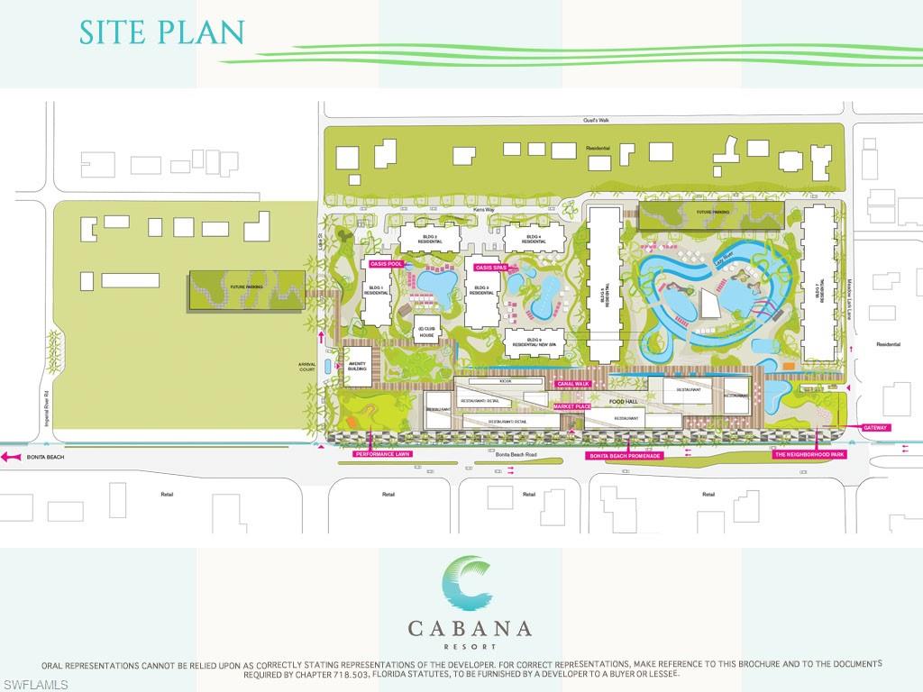 C.17399 - The end unit Sandy Cabana is the largest 3-Bedroom plan in Cabana. It has a gracious Foyer, open floorplan, island Kitchen and spacious Dining area. The wraparound Balcony can be accessed from the main living areas through three sets of slider doors for indoor/outdoor style. The Den is set off by a glass barn door and the Master Suite has a huge walk-in closet The Guest Suite has its own Balcony. All Cabana units have half baths. Cabana is bringing vacation destination amenities and day-through-night family focused attractions to Bonita Springs. Its 7 acres of Resort Pools feature a winding Lazy River, ‘surfable’ triple Flow Rider water feature, a pool with multiple water slides, all within 3 pool areas. 7 stories of energized contemporary architecture introduce a fresh face to Gulf view condo living with teak trimmed, unit-wide glass balconies and spacious floorplans, all bookended by massive ground to rooftop art installations. It’s Grand Food Hall is an airy and open expanse sheathed in glass for 360* views. It’s designed for boardwalk strolling, casual to fine dining, shopping, sampling and socializing in a year round setting.