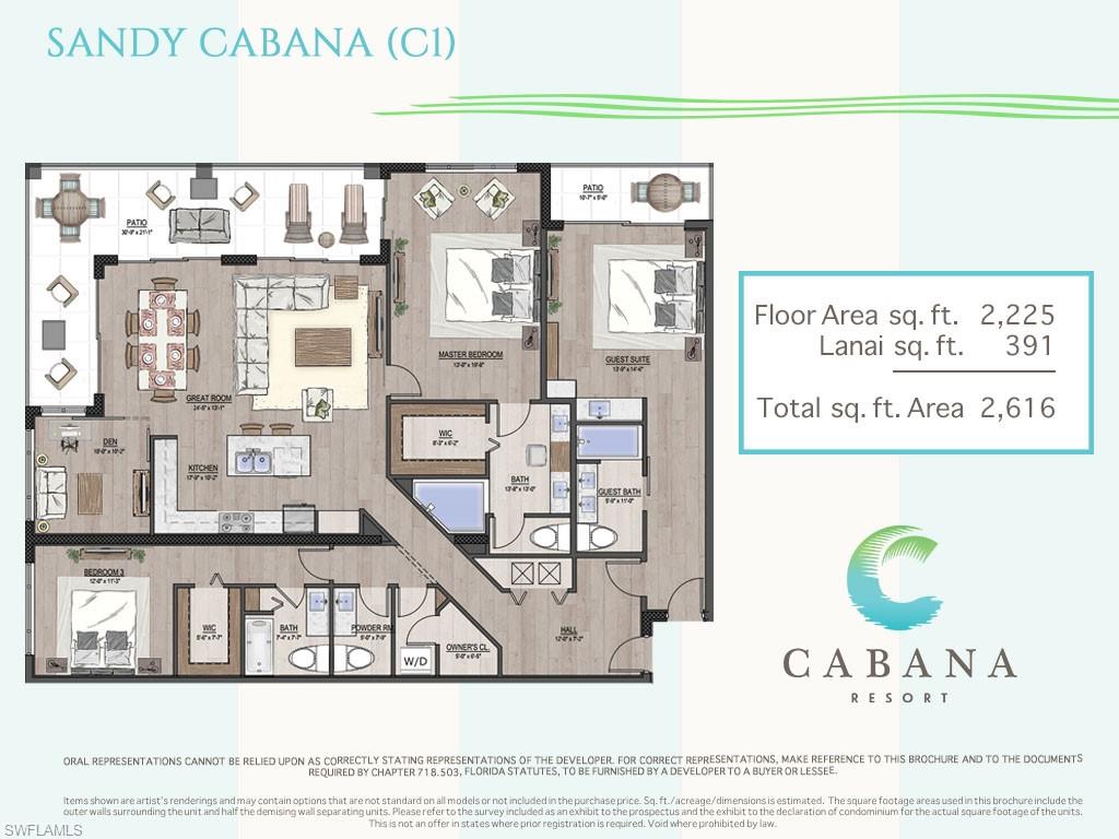 Cabana is bringing vacation destination amenities and day-through-night family focused attractions to Bonita Springs. It will elevate Florida style fun in the sun to state-of-the-art standing. Its 7 acres of Resort Pools feature a winding Lazy River, ‘surfable’ triple Flow Rider water feature, a pool with multiple water slides, all within 3 pool areas. 7 stories of energized contemporary architecture introduce a fresh face to Gulf view condo living with teak trimmed, unit-wide glass balconies and spacious floorplans, all bookended by massive ground to rooftop art installations. Cabana’s Grand Food Hall is an airy and open expanse sheathed in glass for 360* views. It’s designed for boardwalk strolling, casual to fine dining, shopping, sampling and socializing over brews, pop-up arts and Bonita-centric sights in a year round setting. The Sandy Cabana is an open floorplan with a large kitchen and L-shaped central island. Wide door and walkways and higher ceilings throughout add to its spacious feel. It can be reconfigured to gain a separate Dining Room. The Master Bath features a separate commode room. High end finishes.