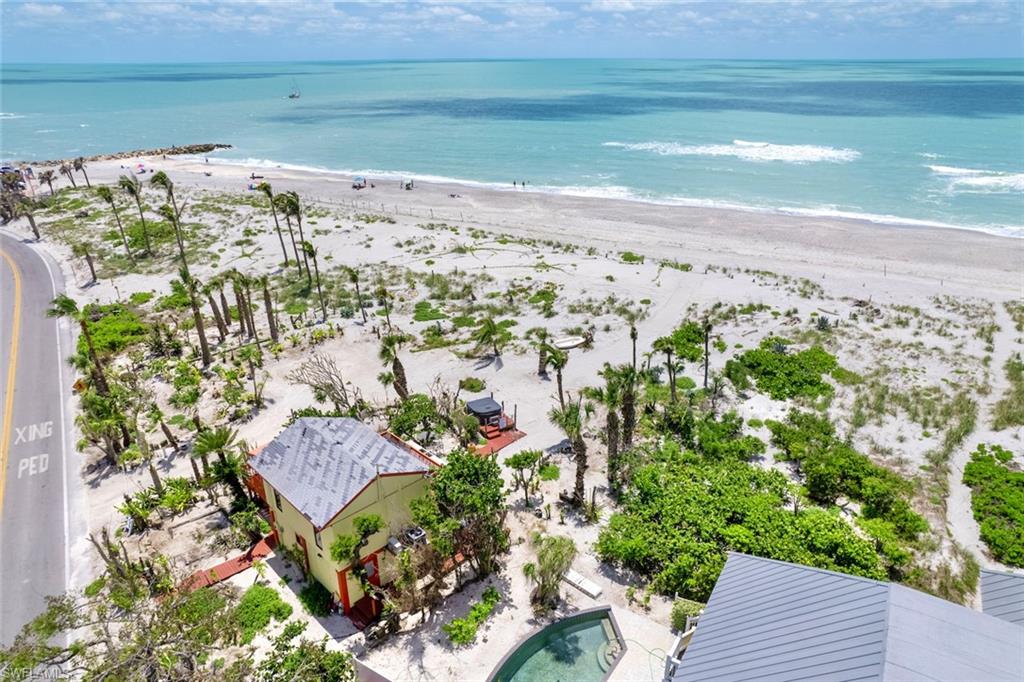 Own this little adorable Captiva beach cottage OR "IMAGINE" and build something incrediably special like the coastal modern masterpiece shown. Displayed are Conceptual renderings of what you could build on this property. You get to decide! Enjoy this adorable beach cottage or build a new coastal modern "Landmark" getaway. Whats offered at this price is this charming seaside retreat showcases a open layout w/expansive glass sliders that open onto a large deck, offering breathtaking views of the Gulf of Mexico. Nestled just steps away from the Blind Pass bridge, where Sanibel/Captiva converge, Coquina Cottage proudly stands as the first residence on Captiva beach, establishing itself as a landmark destination. With its panoramic beach views, this idyllic getaway boasts a compact yet well-equipped kitchen, two cozy sleeping areas, & a soothing spa. Set on a half-acre waterfront property w/a single dwelling along the Gulf, the cottage is enveloped by tropical native vegetation. Enjoy exceptional fishing, observe marine life & wildlife, indulge in world-class shelling, & enjoy enchanting sunsets on the white sand beach of Captiva.