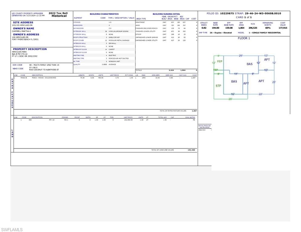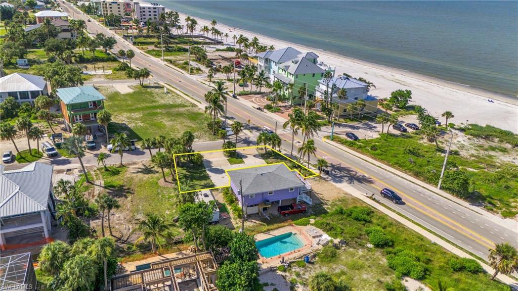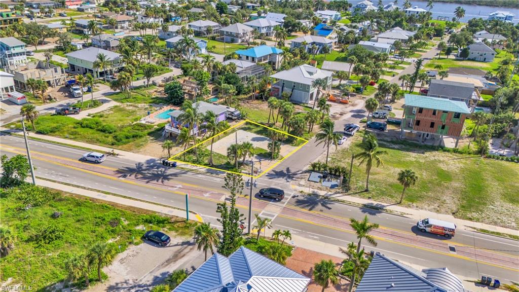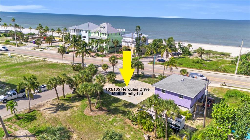 Basically Beachfront! Corner lot on Hercules & Estero Blvd., zoned for weekly vacation rentals, directly across from the Public Beach Access. (check out the video tour) Enjoy beautiful sunsets from a brand new elevated single or multi-family home (property had a duplex pre-hurricane.) Minimum Use Determination from the Town available. This mid-island location has gorgeous Gulf & beach views, a neighborhood park and pier on the bayside, located close to the Publix Grocery Store, waterfront restaurants, Marina, Newton Park, the Mound House. Hercules is a peaceful neighborhood, just a crosswalk away from the white sandy beach and Gulf waters, a bike ride to Times Square, Old San Carlos and the Downtown entertainment at the north-end, and the new rebuild of the "Main Street" High Rise/Resort area with restaurants, entertainment and shopping at the south end. Beautiful new homes have been built in the Hercules neighborhood, a truly wonderful place for families and friends to gather and create lasting memories while enjoying the beach life. Build a full-time home, seasonal residence or income producing weekly vacation rental. You and your guests are going to love it here!