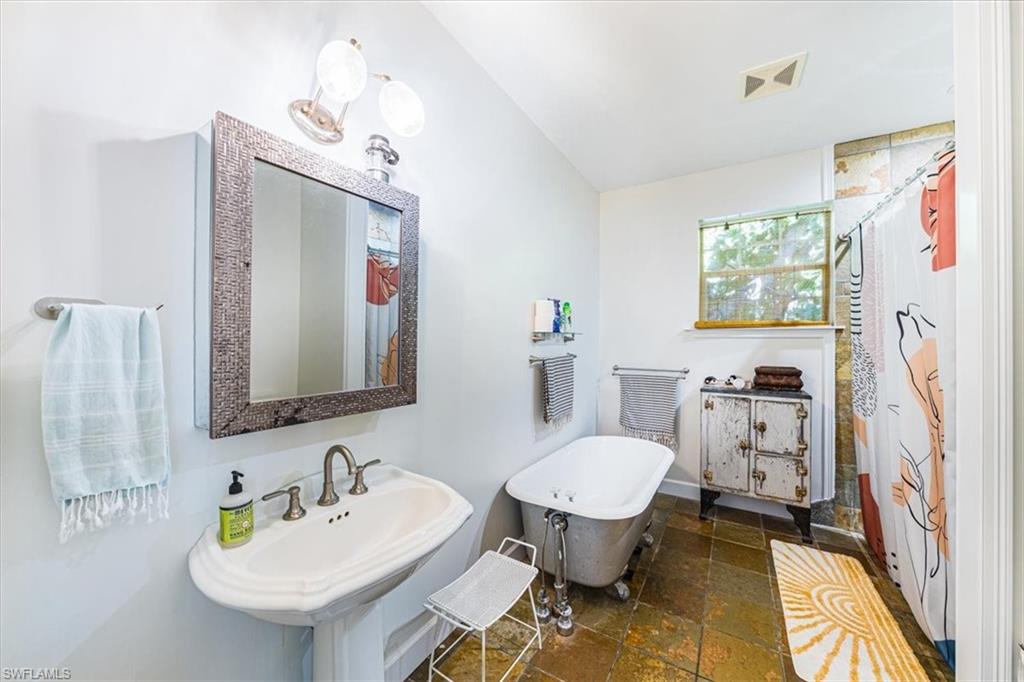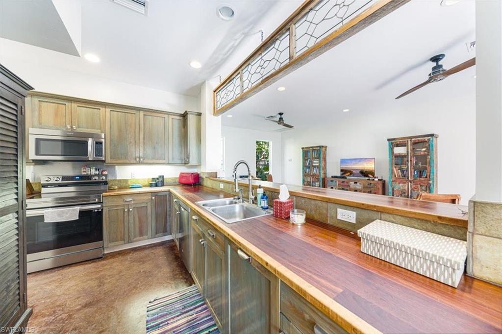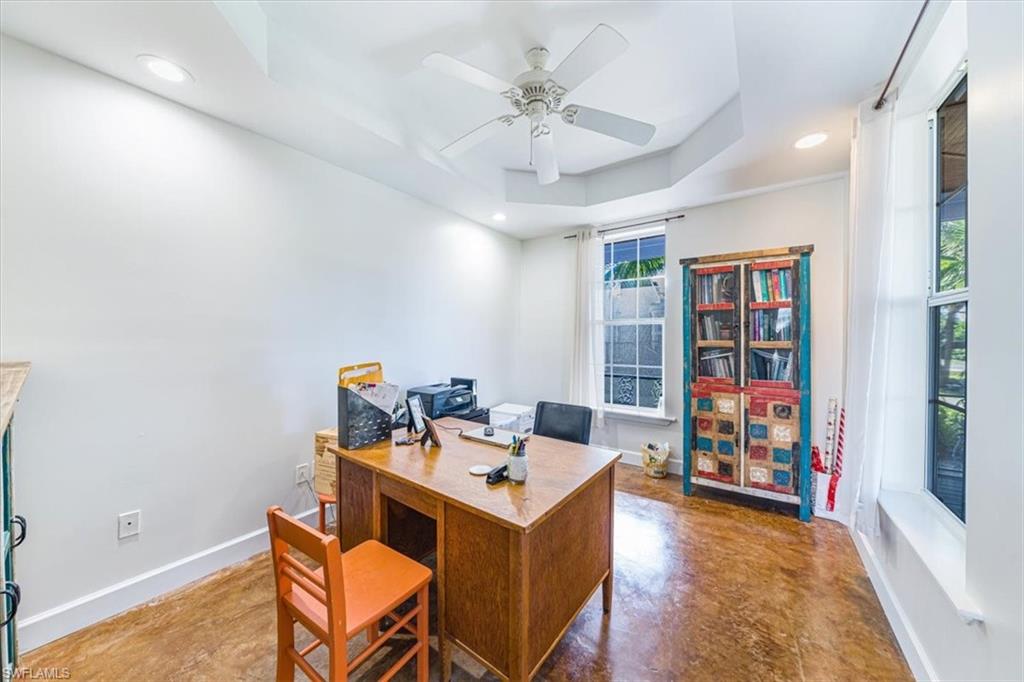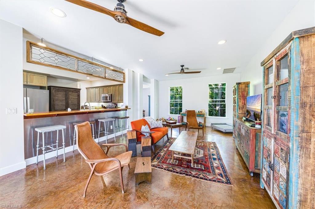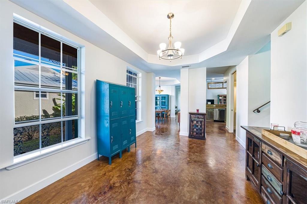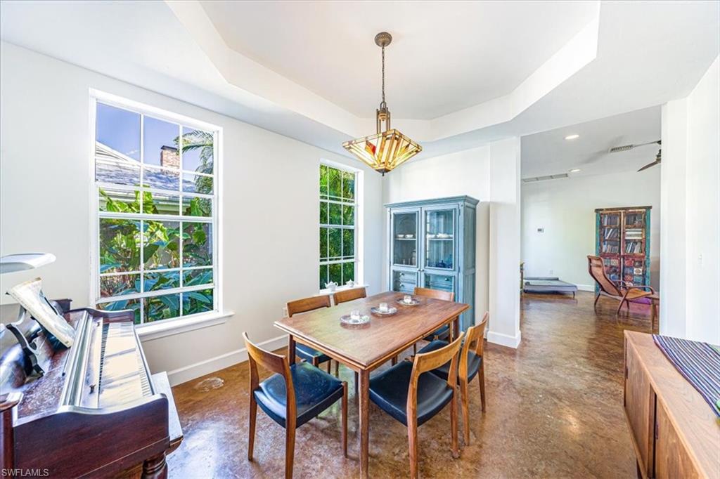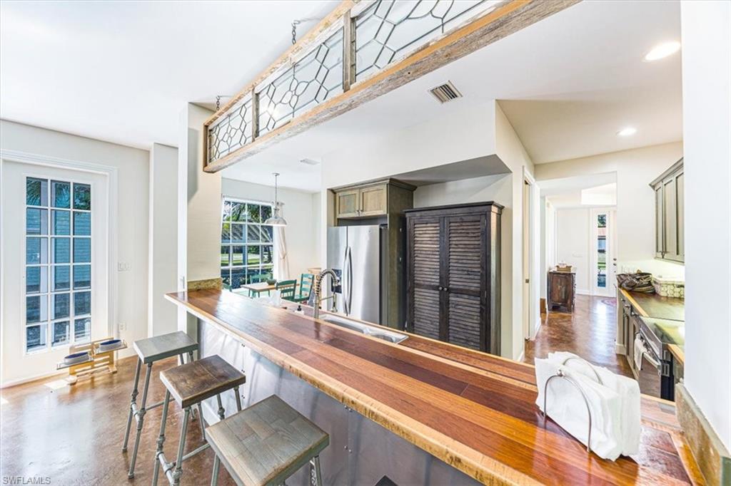 Old Naples Charm in the Heart of Rock Harbor Tucked away on a quiet, tree-lined street in the coveted Rock Harbor neighborhood, 1171 Mockingbird Lane embodies the relaxed charm of Old Naples with unmatched access to the best of the city. Just minutes from the beach, Fifth Avenue, the Gordon River Greenway, and the up-and-coming Davis-Tamiami corridor, this home places you within walking, biking, or a short drive's distance to vibrant dining, nature, and entertainment. The property enjoys direct sidewalk access to the scenic Greenway, ideal for walking, jogging, or cycling. Rock Harbor itself is a hidden gem—serene and walkable, fronting tranquil Rock Creek with little traffic, a spacious public green, and an emerging collection of new waterfront homes. Positioned just west of the green space, this residence presents a rare opportunity to invest in a neighborhood on the rise, offering both charm and long-term value. The two-story home features classic high-ceilinged Florida architecture with a breezy, open layout. A wraparound screened lanai anchors the home, connecting seamlessly to a large, shaded backyard filled with mature trees and lush landscaping. Inside, the residence includes three upstairs bedrooms and a shared bath—ideal for guests or children—alongside a spacious ground-floor master suite with an en suite bath. The main living area includes a formal dining room, a comfortable living room, and a full-size home office, making it equally suited for entertaining or remote work. At the heart of the home is a distinctive kitchen with handcrafted butcher block counters made from 100-year-old wood, blending into the living space via an open counter and flowing out to the lanai through French doors. Elevated on concrete piers, the home also includes a detached garage and a generous yard that can easily accommodate a pool. 1171 Mockingbird Lane offers a seamless blend of indoor and outdoor living, perfectly scaled for family life or quiet relaxation. Whether it's children playing on the lanai, morning bike rides on the Greenway, or sunset strolls to the beach, this home invites you to live the classic Naples lifestyle—effortlessly, and without compromise.