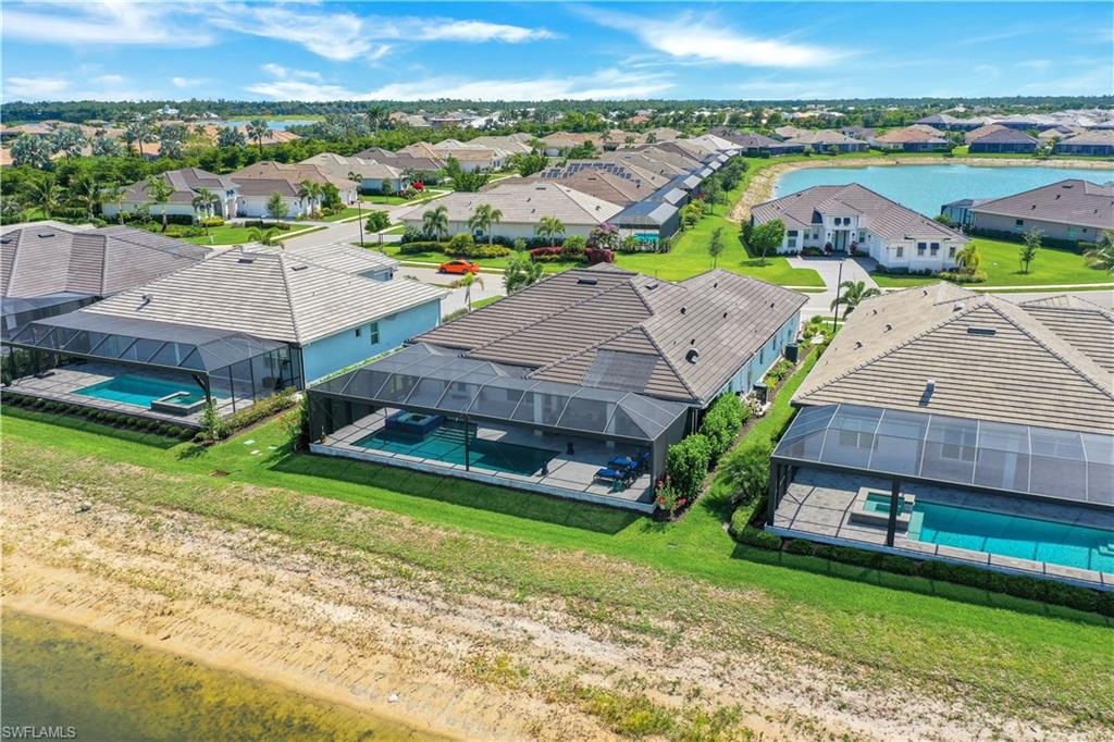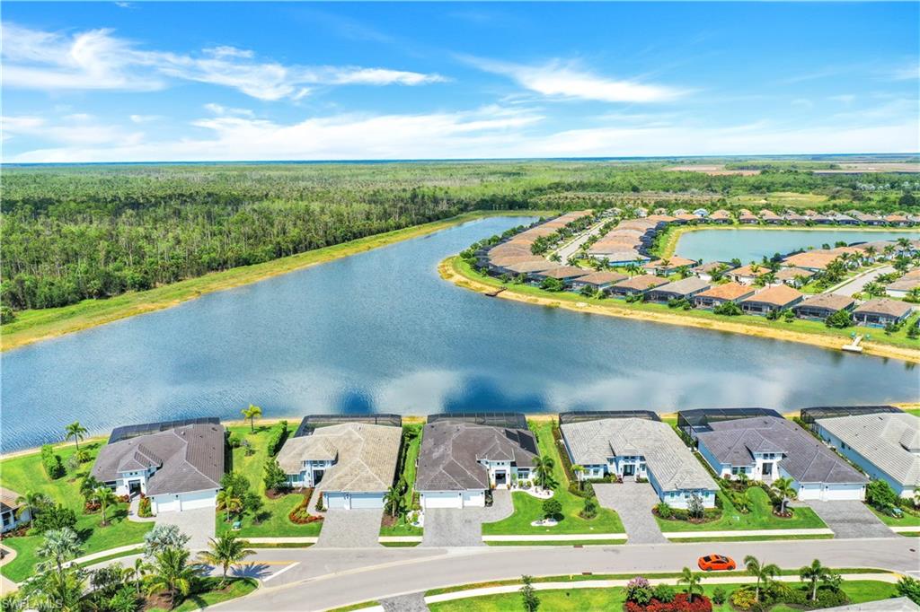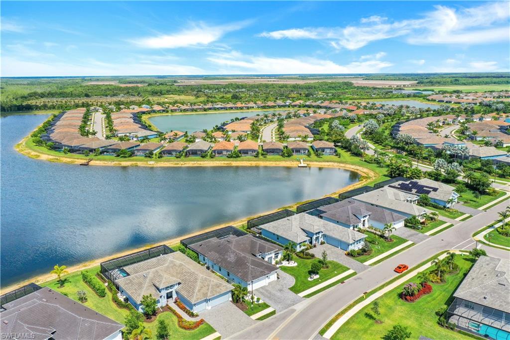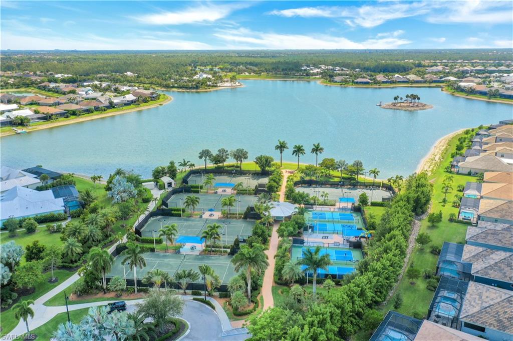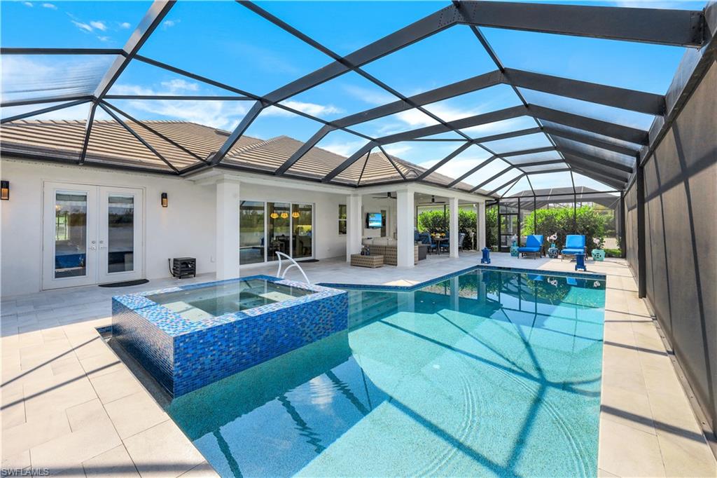 Situated on a Premium Lakefront lot in Naples Reserve, this Beautiful Marathon by Stock Construction has fabulous wide lake views. Enjoy the luxurious lifestyle of this Contemporary open floor plan home with 3 bedrooms plus a den with beautiful Built-in Cabinets, 3.5 baths & 3 car garage with over $$450,000+ in upgrades done after Build!!! The Custom kitchen boasts pullout drawers, a walk-in pantry with electricity & area for small appliances so they won't clutter the countertops, Bosch induction cooktop that heats in seconds, Bosch refrig/freezer and a large island with Cambria Quartz waterfall edges. Electrical outlets are hidden under custom upper cabinets, Elegant 24"x48" Matched Porcelain tile floors run throughout the main areas & master bedroom. Relax in the solar & electric heated Saltwater pool & infinity Jacuzzi surrounded by imported Turkish stone tiles thruout the patio & outdoor Kitchen and covered by a large Picture Window Noseeum screen. Savor the beauty of the custom-designed landscaping. The Kitchen cabinets & appliances, Porcelain Tile Flooring, Pool and Outdoor Kitchen & builtin cabinets were added after closing! Naples Reserve is one of the most desirable neighborhoods in Naples & provides outstanding amenities including a clubhouse, lakefront beach, Marina, fabulous lakes with electric boat & Cafe, Tiki bar with fire pit, fitness center, beach-style pool, tennis, Bocce and pickleball courts, walking and jogging paths, boating, dog parks, and kids' play area. Build your own BOAT DOCK on your property! Don't lose this opportunity to live in 1 of the loveliest cities in the USA!