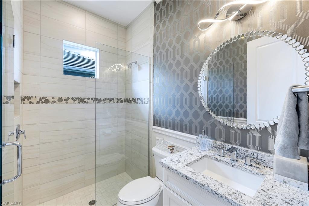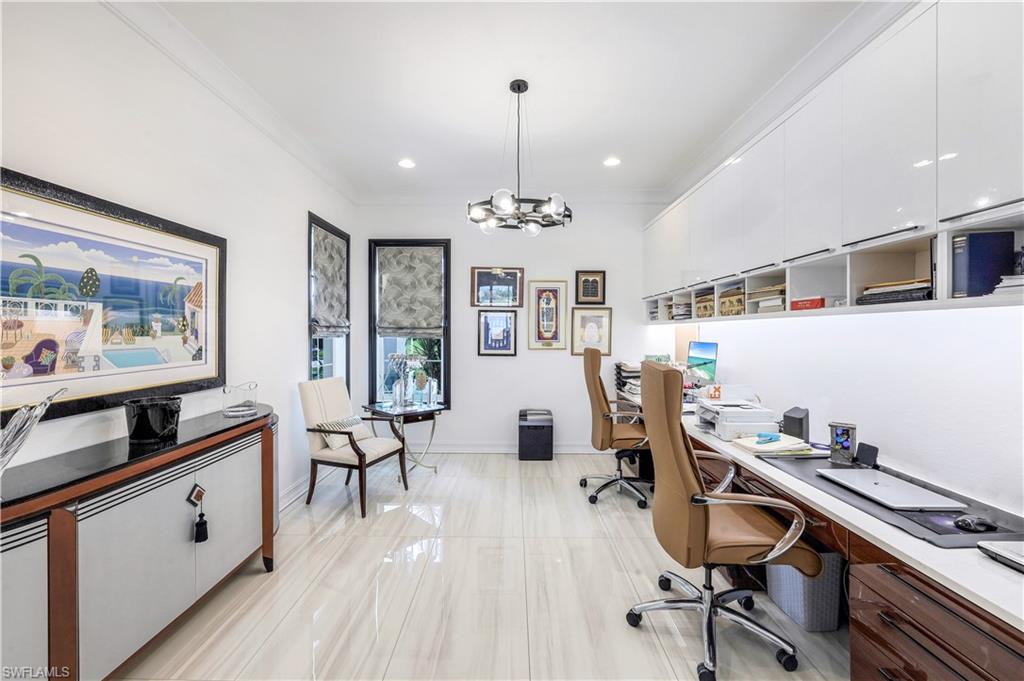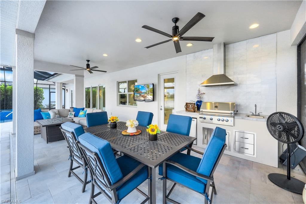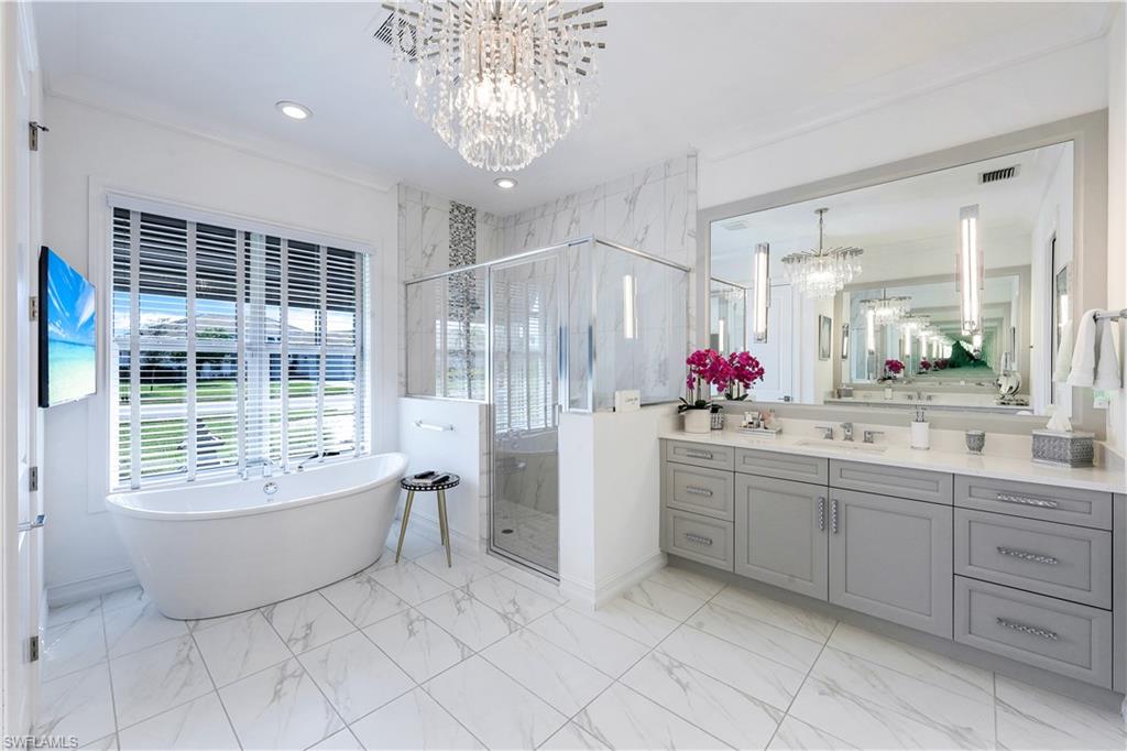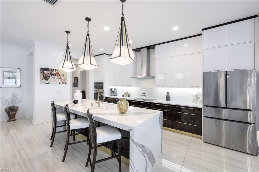 Situated on a Premium Lakefront lot in Naples Reserve, this Beautiful Marathon by Stock Construction has fabulous wide lake views. Enjoy the luxurious lifestyle of this Contemporary open floor plan home with 3 bedrooms plus a den with beautiful Built-in Cabinets, 3.5 baths & 3 car garage with over $$450,000+ in upgrades done after Build!!! The Custom kitchen boasts pullout drawers, a walk-in pantry with electricity & area for small appliances so they won't clutter the countertops, Bosch induction cooktop that heats in seconds, Bosch refrig/freezer and a large island with Cambria Quartz waterfall edges. Electrical outlets are hidden under custom upper cabinets, Elegant 24"x48" Matched Porcelain tile floors run throughout the main areas & master bedroom. Relax in the solar & electric heated Saltwater pool & infinity Jacuzzi surrounded by imported Turkish stone tiles thruout the patio & outdoor Kitchen and covered by a large Picture Window Noseeum screen. Savor the beauty of the custom-designed landscaping. The Kitchen cabinets & appliances, Porcelain Tile Flooring, Pool and Outdoor Kitchen & builtin cabinets were added after closing! Naples Reserve is one of the most desirable neighborhoods in Naples & provides outstanding amenities including a clubhouse, lakefront beach, Marina, fabulous lakes with electric boat & Cafe, Tiki bar with fire pit, fitness center, beach-style pool, tennis, Bocce and pickleball courts, walking and jogging paths, boating, dog parks, and kids' play area. Build your own BOAT DOCK on your property! Don't lose this opportunity to live in 1 of the loveliest cities in the USA!