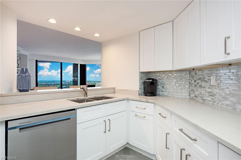 Welcome to your dream coastal retreat on the 18th floor, where luxury meets breathtaking bay views! This turnkey beach condominium is ready for you come and enjoy the season. Start your day with awe-inspiring sunrises over the bay from your beautiful lanai. Indulge in modern elegance with a newly remodeled chef’s kitchen and a primary bath featuring a luxurious walk-in shower. The Terraces is a 19-story building on the beach in Park Shore and is one of the most highly regarded buildings on the beach with resort-style amenities. The building has 24-hour security, three guest suites, beautiful pool and hot tub, fire pit, fitness center, social room with catering kitchen. The Terraces is a pet-friendly building and walking distance to Venetian Village and Waterside shops where you can enjoy world-class dining and shopping.