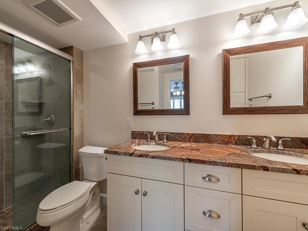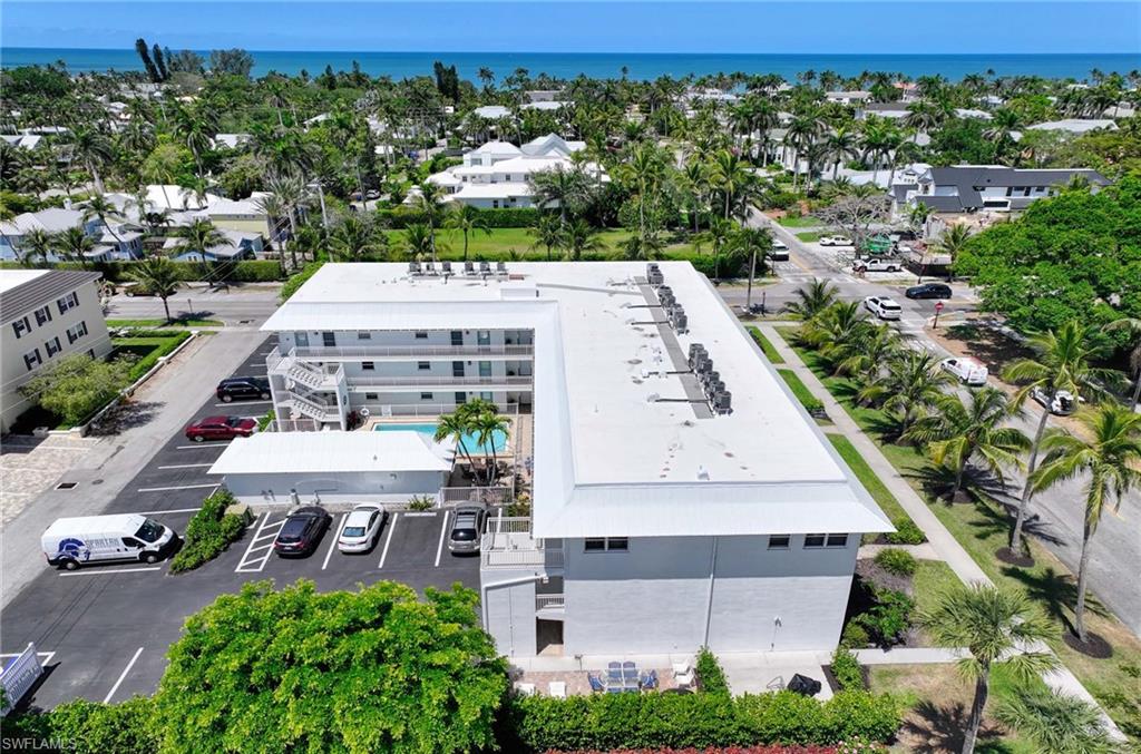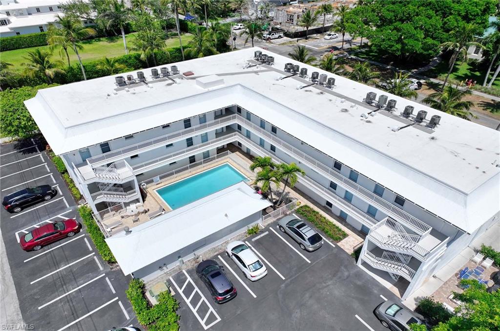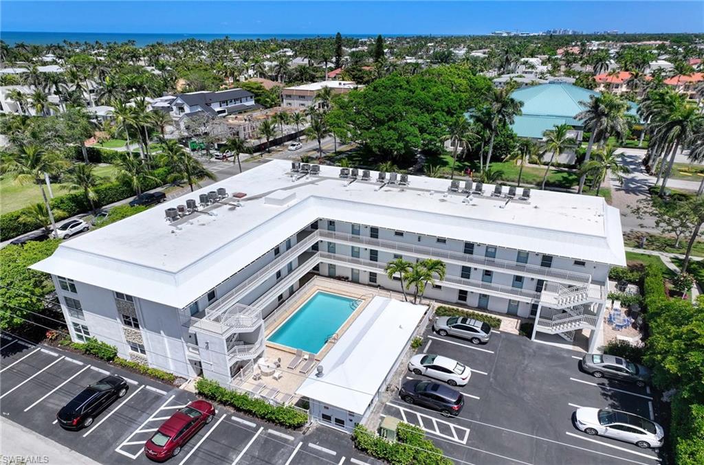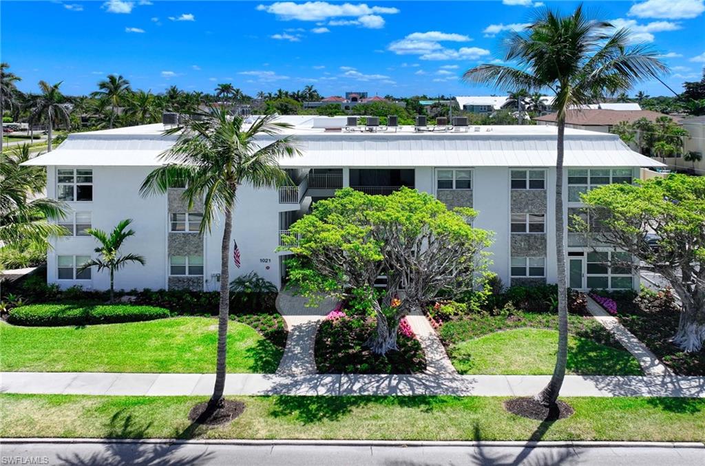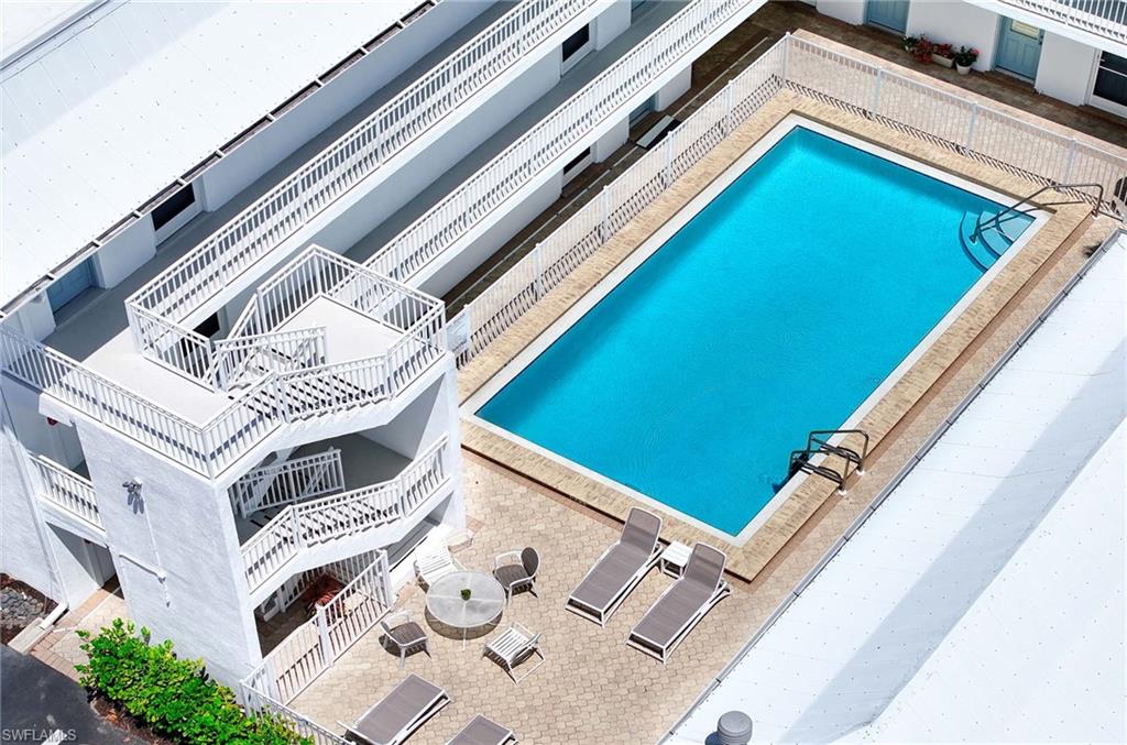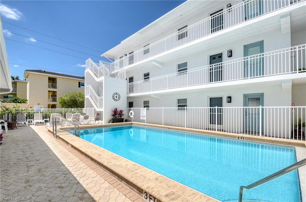 Welcome to your coastal retreat, perfectly nestled in the heart of paradise! This top floor, corner unit two-bedroom, two bathroom residence effortlessly blends comfort, prime location, and the relaxed charm of beachside living. Bathed in abundant natural light, the open floor plan creates a warm and inviting ambiance, with western exposure enhancing the airy, sunlit living space, ideal for your personalized touches. The updated kitchen and baths feature granite countertops and stainless steel appliances, adding modern elegance to this coastal gem. Just a leisurely stroll from Naples’ famous sugar sand beaches and the Gulf of Mexico, this home places you at the heart of it all. Enjoy the vibrant energy of Third Street South and 5th Avenue South, where world-class shopping, dining, and cultural experiences await. For convenience and peace of mind, the building offers a common elevator and an assigned parking spot. The community pool provides the perfect setting to unwind and socialize, with sunny days and cool waters creating an idyllic backdrop for relaxation and fun. Enjoy added peace of mind knowing that the association has funded reserves, with no special assessments planned. Capital improvements, including those required by law, are strategically planned with dedicated reserves allocated on a scheduled timeline. Say hello to a lifestyle where every day feels like a vacation!