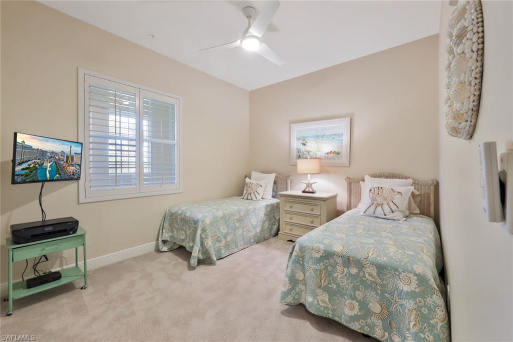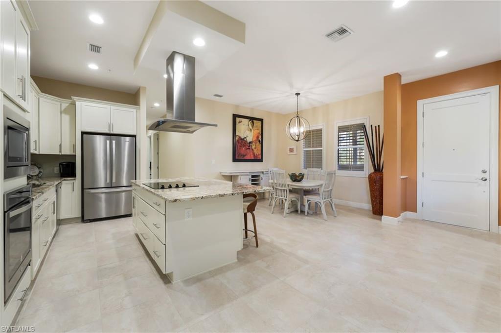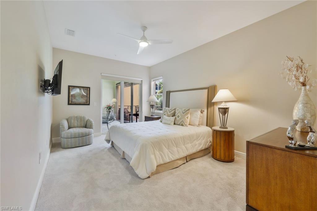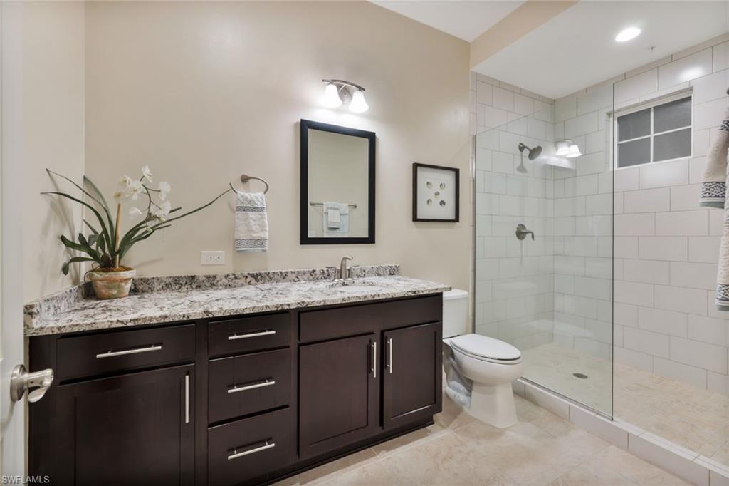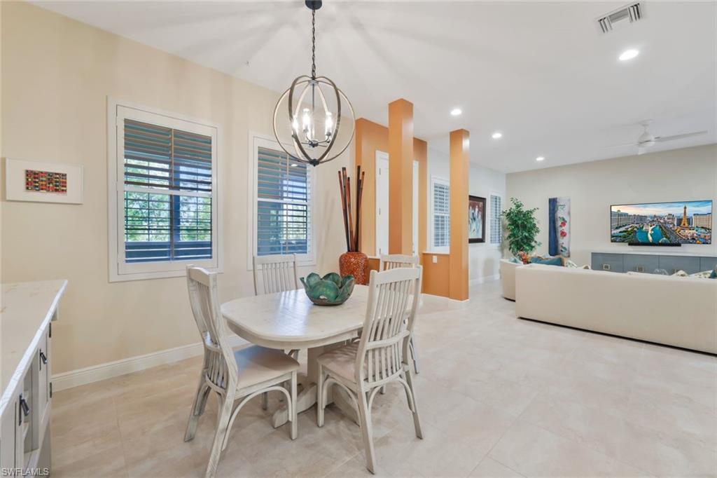 Immaculately maintained w/ abundance of enhancements this 3 bed, 2 bath condo is located in the sought after gated community of Genova at Coconut Point. With t/ most desirable Western exposure, enjoy endless beautiful sunsets! Fall in love w/ the large open concept layout w/ many upgrades including: all windows & doors are impact resistant, interior doors are 8' & solid core, interior walls are fully insulated, plantation shutters, an oversized 2 car garage w/ 18' door, additional climate-controlled storage space & the list goes on! Enjoy the gorgeous kitchen w/ white shaker cabinetry, granite countertops, lovely neutral backsplash, kitchen island w/ storage on both sides, & a hood over your stove so you can cook & entertain! The spacious primary bedroom has direct access to lanai & a wonderful ensuite bathroom w/ freestanding tub, frameless glass walk-in shower, gorgeous tile & listello detail, & dual vanities! Genova offers a lavish lifestyle, including full amenity clubhouse, outdoor pool & spa, indoor lap pool, party room, fitness room& saunas. Located near Coconut Point Mall, RSW airport, & Koreshan State Park, residents enjoy easy access to shopping, dining, & entertainment!