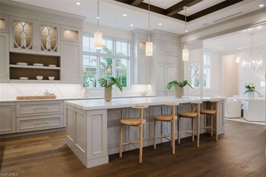 Recently completed! Experience luxury living at its finest in this new construction home nestled in the heart of sought-after Olde Naples. This Southern exposure two-story residence boasts 5 bedrooms + den (optional 6th Bedroom), 5 (2 Half) bathrooms, and multiple living areas including an upstairs loft complete with its own kitchen. The Butler's pantry complements the chef's kitchen featuring high-end appliances, including a gas cooktop and large island. With an open floor plan and a spa-like master suite, this home is designed for comfort and elegance. The outdoor kitchen, expansive outdoor living area, and resort-style pool with a spa offer an ideal setting for lavish entertaining. Waterside Builders, Falcon Design and DLY Design have come together to construct a showstopping masterpiece. Ideally located in the 100 Block of Olde Naples within walking and biking distance of downtown, 5th Avenue South's, and 3rd Street South's, fine dining, world-class, shopping entertainment, and white sand beaches.