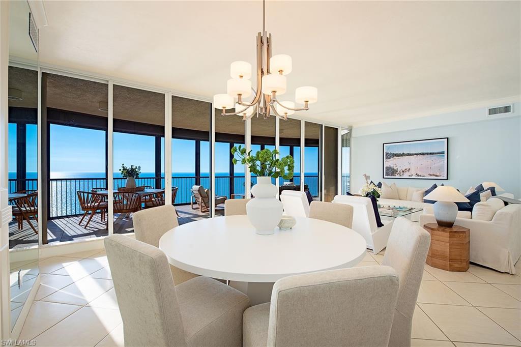 Undeniably, Remington is one of the most prestigious buildings directly on the beach in Naples. The guard-gated community of Bay Colony is next to the world-renowned Ritz-Carlton. Residents of The Remington have direct access to some of the amenities of this five-star luxury beach resort. Residence PH2002 captures spectacular views of the beach and pristine coastline. This immaculate residence encompasses over 2,800 square feet, featuring the primary suite directly on the beach and/or one den and three full baths. The great room along with the kitchen and primary sit seaside enjoying sizzling sunsets each night. Near Bay Colony’s private beach and tennis club where members are pampered with full beach service and fine dining. The residential lifestyle is adored by all!