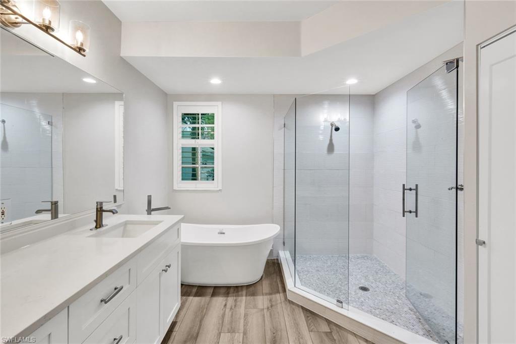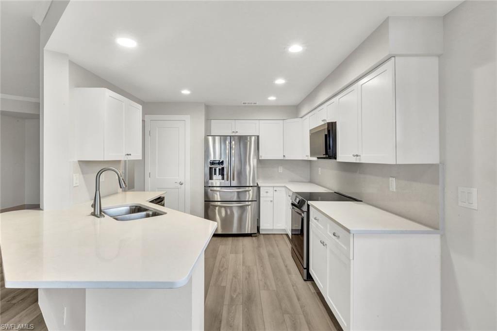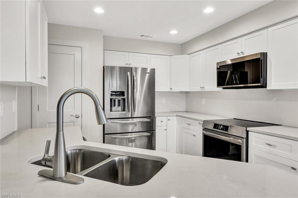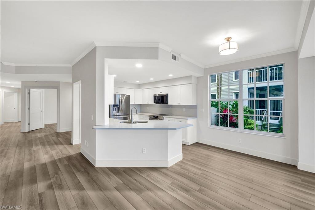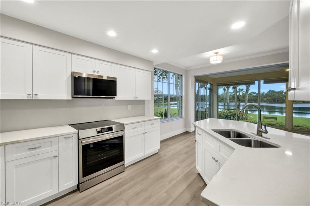 Enjoy one of the MOST AMAZING VIEWS IN Bonita Bay in the exclusive Community of Greenbriar. This 3-bedroom, 2 bath home features tons of sunlight and spectacular water views! This Home has been 100% Remodeled and Updated. New Kitchen, New Floors, New Appliances, New Paint, New Bathrooms (I can go on and on - New Everything) Lake vistas in rear when glancing out from the Kitchen, Great Room, Master Bedroom, or spacious Glassed-in lanai. Plenty of windows allowing the outside to reflect inwards. This Lower Level (1st. Floor Unit) Has a Two (2) Car "Attached" Garage. Two (2) Car Garages are Rarely found in Florida.... If views are one of your Dreams, this is your place. Greenbriar boasts its own large community pool/spa and two tennis courts for the exclusive use of Greenbriar residents and is centrally located within the gated community of Bonita Bay. The brand-new pavilion/pool house also has a 75" TV & upgraded tile/granite features and Plenty of social activities. Bonita Bay amenities include a private beach park on the Gulf of Mexico, over 12 miles of walking and biking paths, canoes/kayaks at 2 of 3 resident parks, full marina with gulf access along with Boat storage inside or out and Backwater Jack's for dining. The Bonita Bay Club is member owned and offers 5 golf courses, 18 tennis courts, 10 pickleball courts, restaurants, spa and salon, state-of-the-art fitness center, resort style swimming pool and social activities. The Bonita Bay Club offers some of the finest amenities in Southwest Florida with memberships available, but not mandatory.