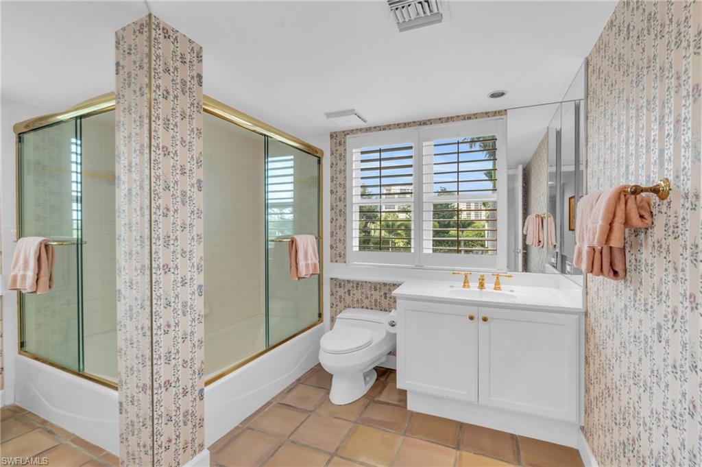 Best priced waterfront unit in the exclusive Bay Colony! Located on the 3rd floor, one floor above the roof of the parking garage, with Gulf and preserve views. This large residence boasts over 2,600SF of living space and a 600 SF balcony, three generous bedrooms with en suite baths, a den, and a guest powder room to accommodate everyone with ease. Indulge in a luxurious lifestyle with amenities such as on-site Har-Tru tennis court, pool, and beach access. And don't forget all the privileges that your Bay Colony & Pelican Bay Membership unlock, such as 2½ miles of beach, Gulf-Front Beach Clubs with dining, tennis centers, golf clubs, free transportations, nature paths, and more. This is Naples living at its finest!