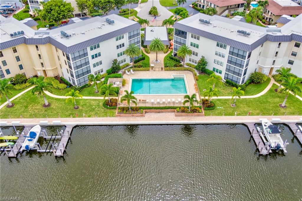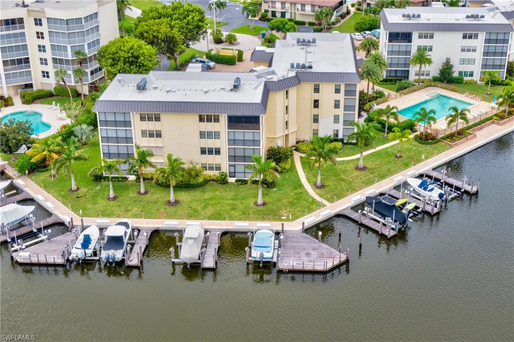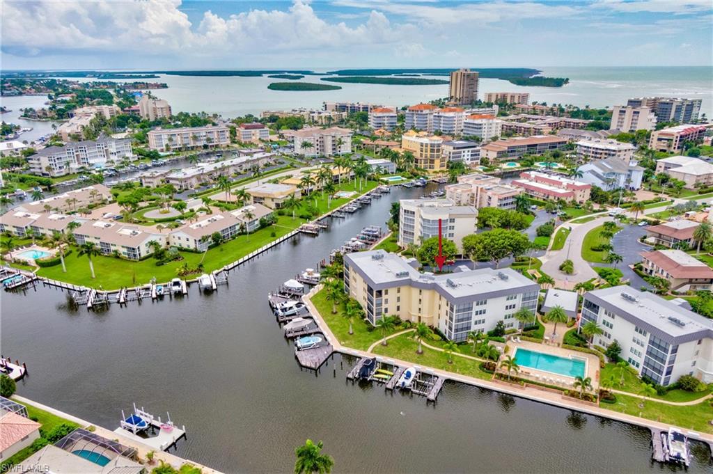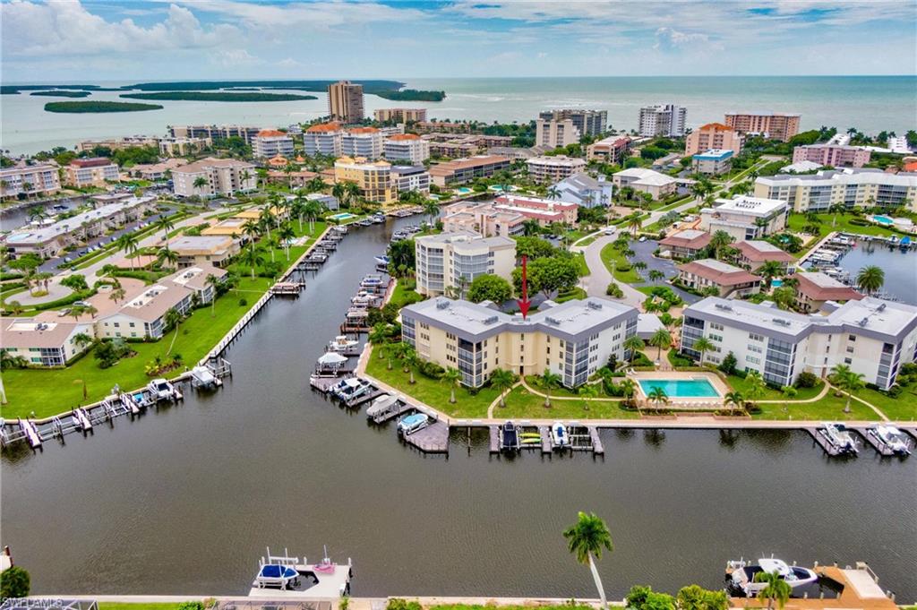 This is it! This spacious turn key 2 bedroom, 2 bath unit is located on the south end of Marco Island in the most desirable Breezy Point Condominiums, nestled at the end of a peace cul-de-sac. This corner unit has gorgeous views of the south beach skyline and overlooks a beautiful bay. The furnished unit has new plantation shutters throughout and has been freshly painted and carpeted. Included with this unit is your own assigned boat slip with direct access to the Gulf of Mexico just minutes away. The 32-unit property shines with a newly renovated pool and clubhouse, new exterior paint, a new metal roof, updated elevators, and recent extensive landscaping enhancements. The new docks and seawall were completed in 2018. Within walking distance to the beach! Welcome to paradise!
