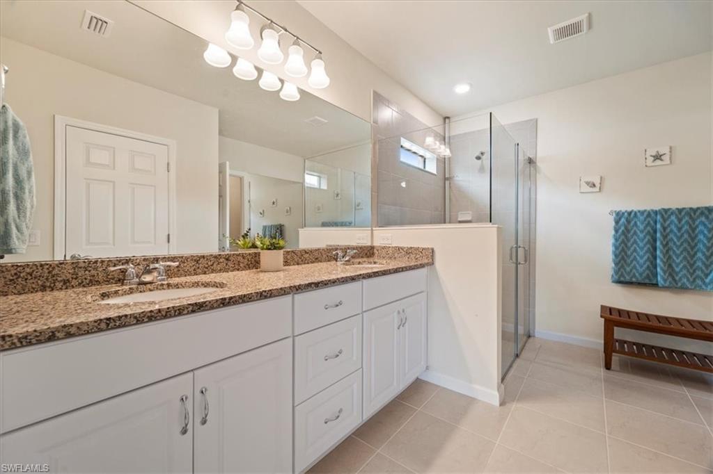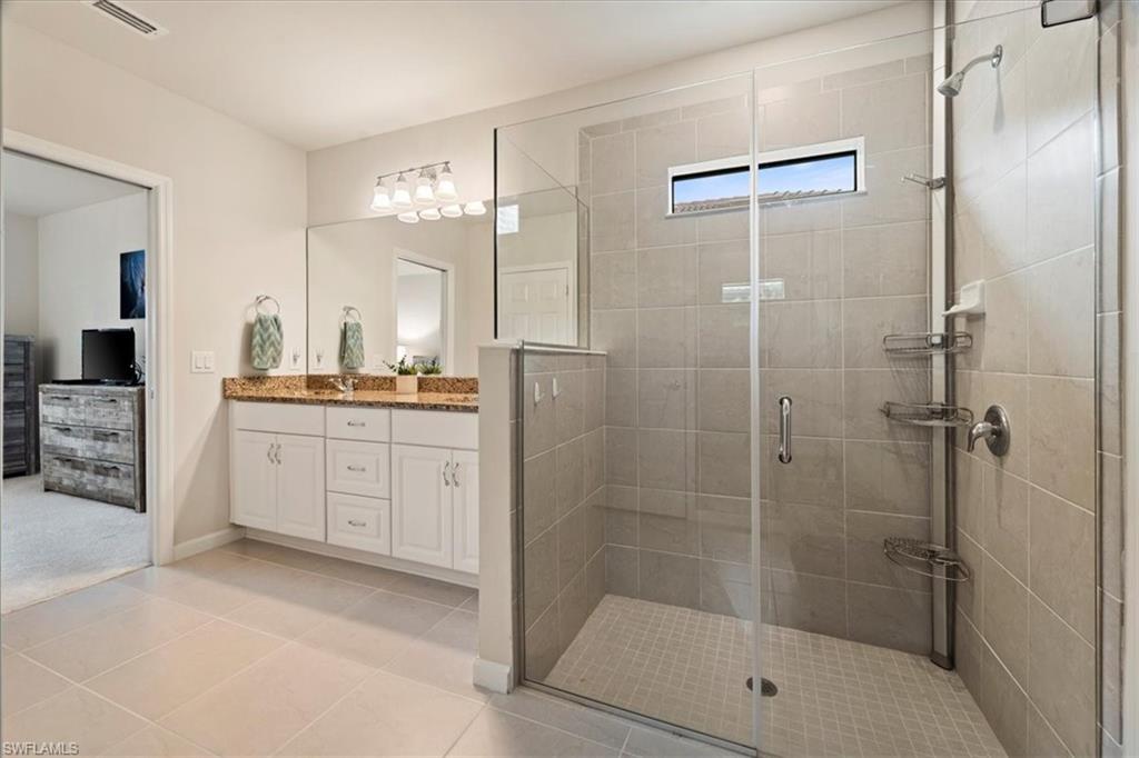 FANTASTIC NEW PRICE!! No waiting for new construction! Welcome Home to this spectacular Pulte built Dolce home in the Del Webb 55+ community located in Ave Maria, FL. Spectacular! Amazing! These are just a few thoughts when you see this home. From the moment you step through the front door you will know that you have entered a distinctive home. This home boasts a premium lake view in front and back of the home with a quite and relaxing retreat on your extended screened lanai where you can unwind in a hot tub or relax with an evening glass of wine or morning coffee. Tasteful upscale enhancements abound, such as upgraded lighting/fans, Plantation shutters and custom sliding glass door window treatment, granite counters, SS appliances, large kitchen island. The Master bathroom has extended granite counter with double sinks, upgraded shower door and floor to ceiling mirror wall. Role down hurricane shutters on all windows and slider for quick and worry free storm preparation. Front entrance screened, epoxy garage floor, insulated garage door, upgraded landscaping. Amenities include two pools, spa, pickleball, library, cafe, large event room, fitness gym, card, billiards and meeting rooms. Come experience life to the fullest where there are activities for everyone. With the negotiable furniture, this home could be effortlessly ready to step into so you can begin your Florida lifestyle. Welcome Home!
