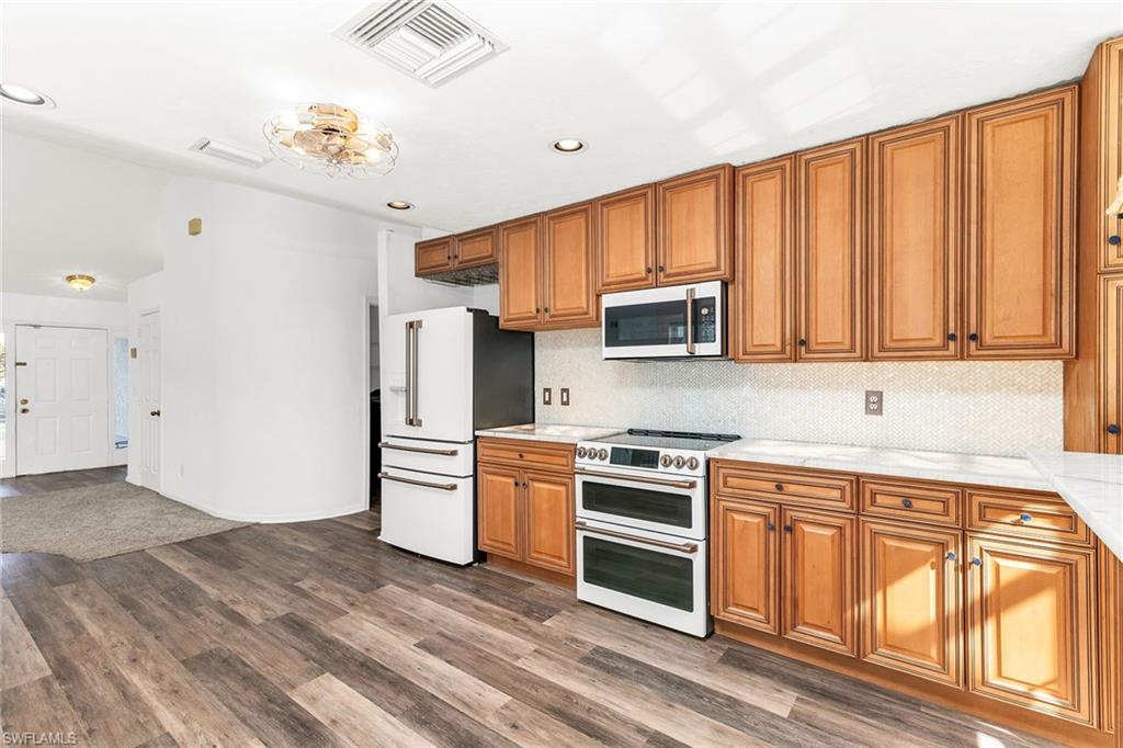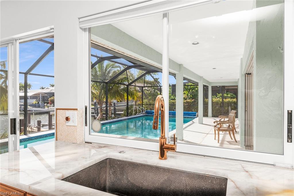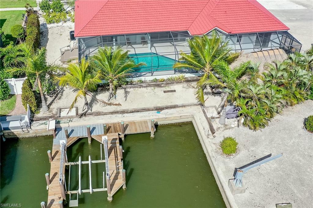 Great waterfront house close to the YMCA and Mackle Park. This home features vaulted ceilings and a beautiful updated kitchen with lighting under the Cristallo quartzite natural stone counters, top-of-the-line white signature Cafe GE appliances, and a large moveable island with seating. Large corner lot with many possibilities for an addition, additional garage space or an amazing landscaped yard. Relax by the pool and enjoy the water view. Tiki Hut added by the waterside for that perfect tropical oasis. New metal roof in 2019, new screen cage in 2018. Short boat ride to open water.