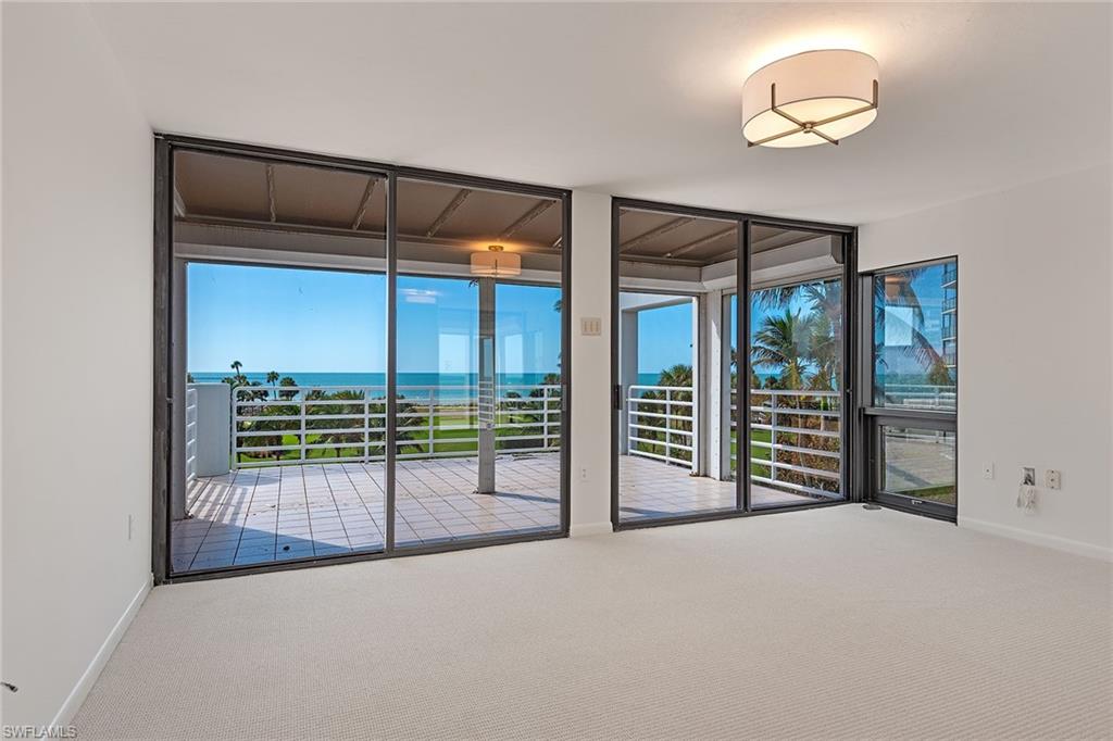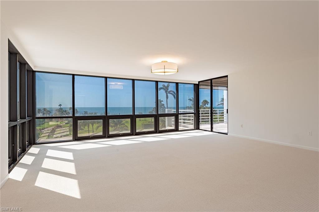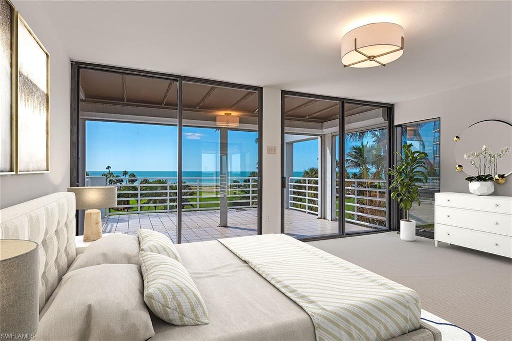 Get lost in the stunning views from this rare three-bedroom in the sought-after 08 stack at The Terraces at Park Shore—one of Naples' most desirable beachfront buildings with resort-style amenities. This updated condo features floor-to-ceiling windows, fresh paint, new carpet, and modern lighting. The kitchen, bathrooms, and lanai offer room for your personal touch, but the rest is move-in ready. Step inside and be swept away by panoramic 180-degree views of the Gulf of Mexico. The spacious, west-facing terrace is perfect for watching sunsets, dining al fresco, or relaxing to the sound of the waves. The 19-story building is directly on the beach yet set back for added protection from storms. Amenities include a fitness center, pool, hot tub, fire pit, barbecue area, 24-hour door attendant, and three guest suites. Pet-friendly and ideally located just minutes from Venetian Village and a short drive to Fifth Avenue. This turnkey coastal retreat is ready for season. Some photos have been virtually staged.