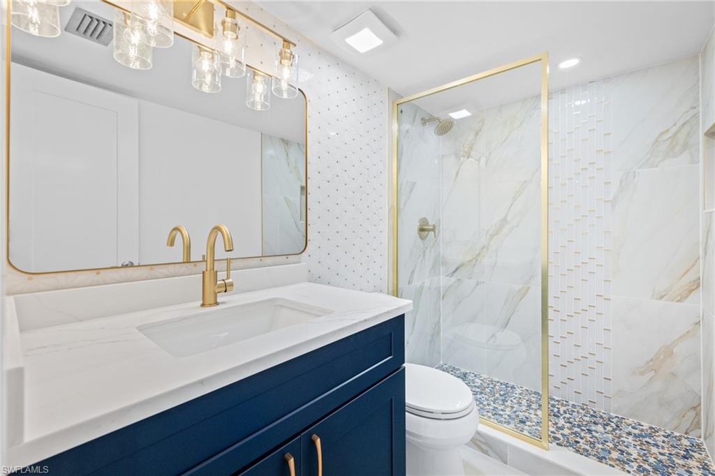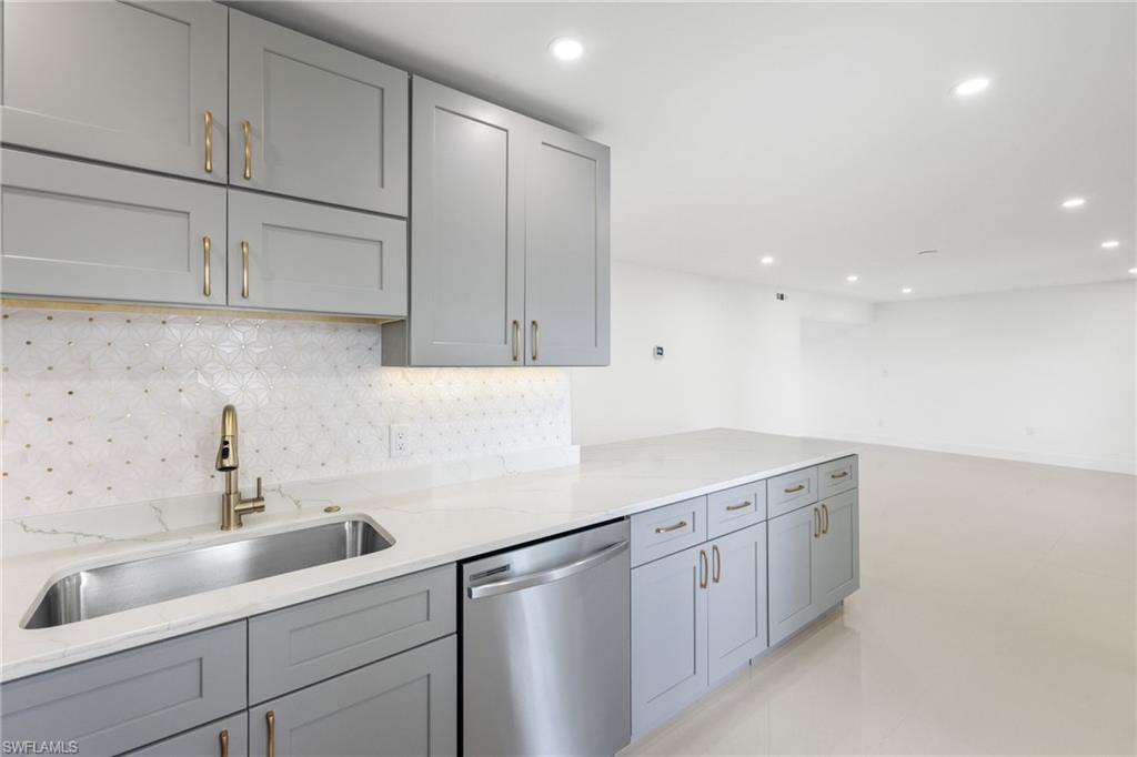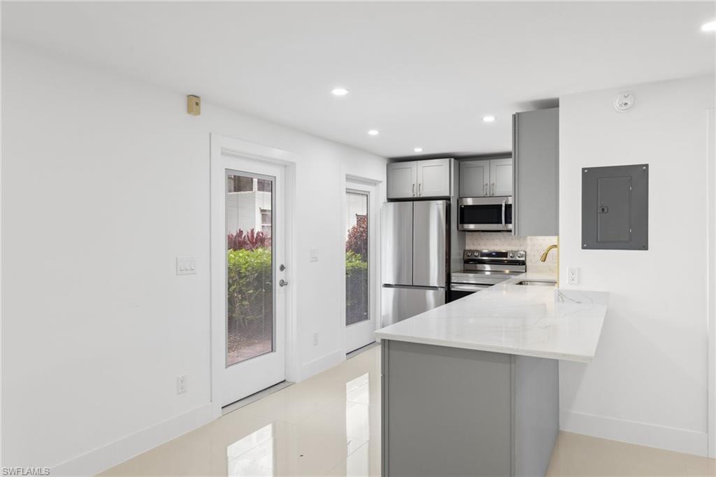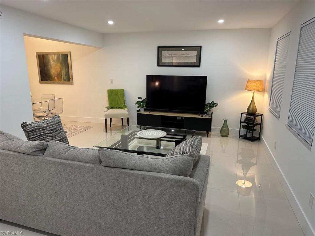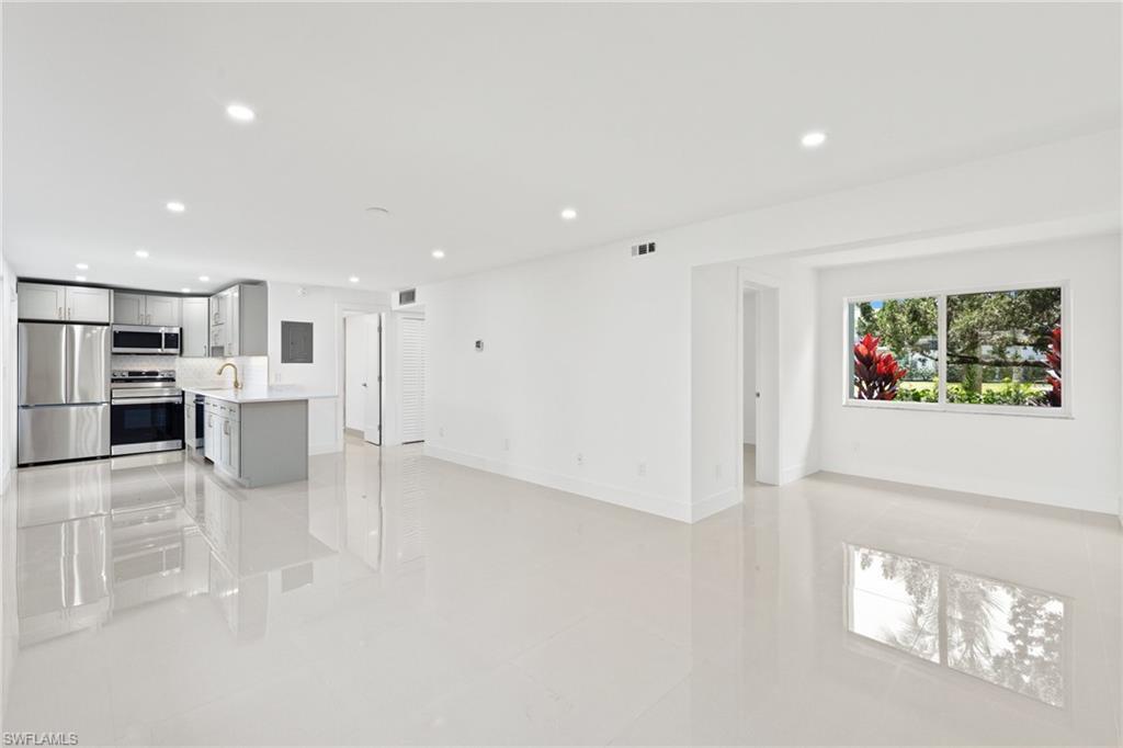 Discover this beautifully renovated 2-bedroom, 2-bath condo in Village Green, perfectly located in the heart of Olde Naples. This turnkey residence offers high-end finishes throughout, including all-new impact windows and doors, quartz countertops, custom tile work, and new stainless steel appliances. A new electrical panel, new water heater, and updated systems provide peace of mind and long-term value. The open and bright floor plan features an elegantly redesigned kitchen, spacious living and dining area, and two upgraded baths with modern fixtures. Owners will appreciate the quality craftsmanship, thoughtful design details, and tasteful furnishings included with the sale. Village Green offers a welcoming community setting with a clubhouse, pool, shuffleboard, and easy access to world-class dining, shopping, and the Gulf beaches. Located just minutes to Third Street South, Crayton Cove, and the iconic Naples Pier, this condo is the ideal opportunity to enjoy the best of the Olde Naples lifestyle.