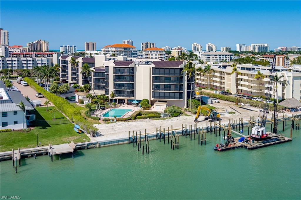 Well appointed, totally updated 3 bedroom 2 bath condo, with direct access, is being sold furnished and has the comfort of a single family home. It has beautiful partial views of the Gulf from the living area lanai and master bedroom. The master is very spacious with three big closets and ensuite. The kitchen boasts in granite counters, stainless steel appliances and floor to ceiling custom cabinets. Steps from the kitchen is a laundry room with a new washer and dryer, another convenient feature. The same tile runs throughout the entire unit. One of the two guest bedrooms is being used as an office while the other is the perfect room for your favorite guest. Boaters will like that there docks can be rented quarterly upon availability. This building has been certified for the safety of all its owners and guests. For owners that like to entertain, owners have access to the spacious and beautiful PH terrace, with amazing views of the Gulf of Mexico. The clubhouse with its fully equipped kitchen, overlooks the pool and the Gulf, making it just right for entertaining family and friends. The pool and jacuzzi area are fabulous for relaxation, while enjoying the Florida sun and admiring the stunning views of the Gulf of Mexico. The nearby white, sandy, beaches, wonderful restaurants and great shopping makes this unit an ideal second home or a permanent residence.