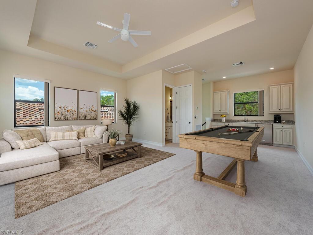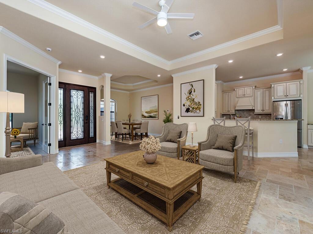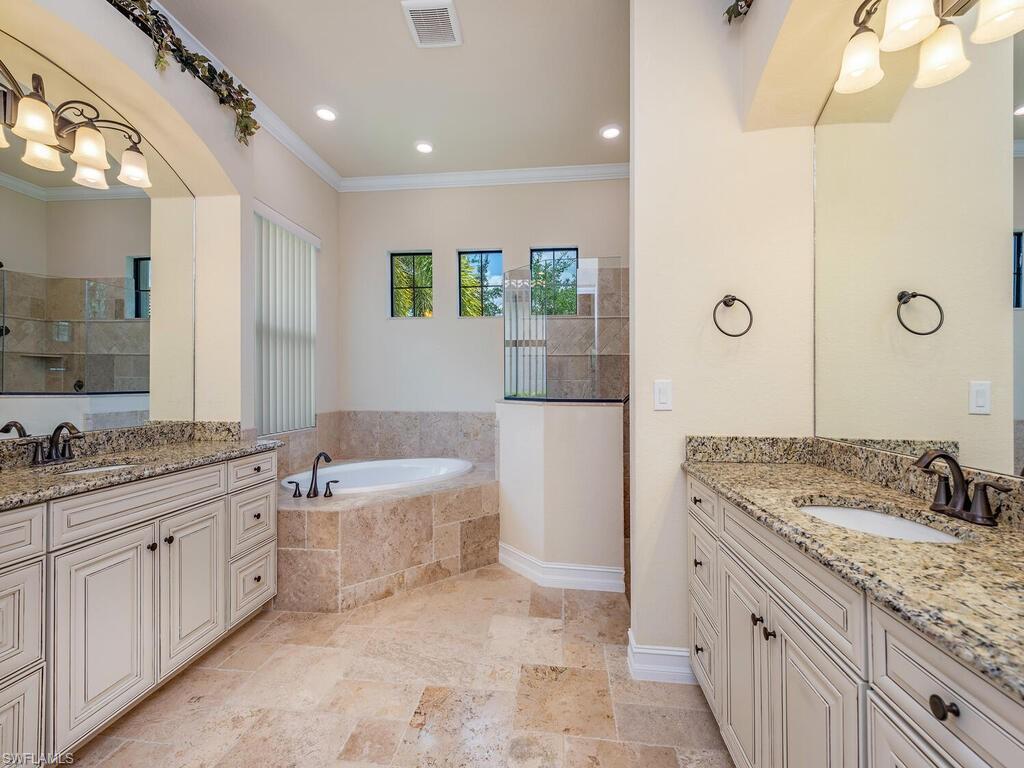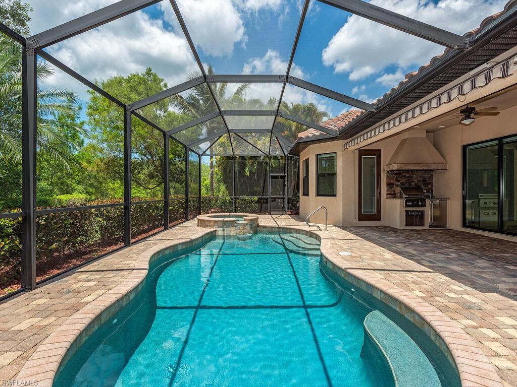 This beautiful Estate home boasts a grand entry, 3 bedrooms, 3 1/2 baths, a large great room plus a 600 square foot upstairs bonus room with a kitchenette/wet bar and full bathroom. All three bedrooms are situated on the first floor, including the sprawling owner’s suite. This luxurious two-story home features a formal dining room and den near the foyer, followed by an open Gourmet Kitchen and Great Room in a shared airy layout. The Napoli Grande has upgrades galore that include travertine tile flooring, granite counter tops throughout, Generator fueled by a 500 Gallon Propane tank, heated pool and spa, outdoor summer kitchen, lanai & cage in a lovely private preserve view setting. This home is ideal for entertaining guests. Sit and relax at our resort style pool, or take advantage of our spa, tennis, basketball, pickle ball, workout facility, aerobic center and bar & grill. This home has a Deeded Social Membership which allows you access to the TPC Golf course May through October. The 24-hour gated community offers something for everyone and is located just 5 miles from 5th Avenue restaurants, shopping and the Gulf of Mexico. The lifestyle at Treviso Bay is truly resort style living. Come and live the lifestyle you've always wanted at Treviso Bay.