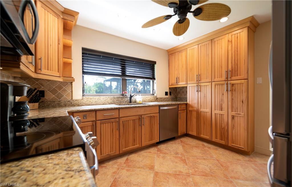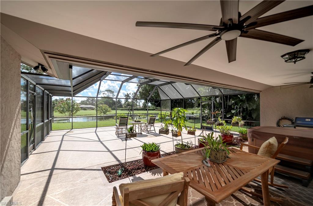 Tropical, lushly landscaped .27 acre lot with tranquil lagoon and golf course views from your 1000 sq ft lanai (over 300 sq. ft. under roof) including "Bullfrog" brand hot tub. This meticulously maintained home in an X FLOOD ZONE with LOW $225 YEARLY HOA DUES, features ALL premium updates and a NEWER architectural designed metal roof (50 year warranty), AC System, PEX Plumbing, Lawn & Irrigation System, Garage Door, Insulation, Electrical Outlets and so much more. The spacious kitchen & laundry room boast ALL NEW Stainless Steel APPLIANCES, Granite Countertops plus Natural Hickory Cabinets and the bathroom showers highlight 20" Italian Porcelain Tile, mosaic floors and glass doors. All closets have Custom Wood Shelving and the great room centerpiece is a one of a kind, natural keystone/fossilized coral, Wood Burning Fireplace with a single stone hearth. Lely Country Club is 10 minutes to downtown Naples and 15 minutes to crystal blue water and white sandy gulf beaches. Experience "Naples Best Kept Secret" and "last bastion" of single family, non-condo fee living on large lots, close to everything Naples has to offer. Torrey Pines is a friendly yet quiet (dead end street/culdesac) neighborhood SURROUNDED BY A PRIVATE GOLF COURSE where beauty and privacy meet convenience.