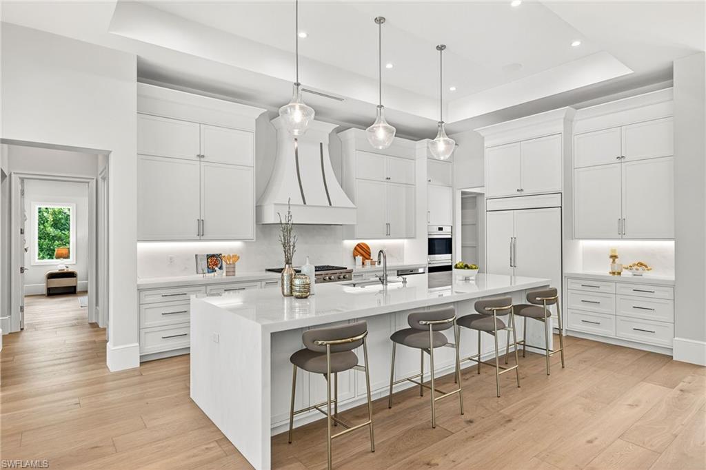 Luxurious 4 Bed/4.5 BA, 4,028 sqft home on a 100x160 lot awaits you in the coveted Moorings neighborhood of Naples. Perfectly designed for lavish entertaining and family life, this architectural masterpiece sets the standard for luxurious Naples living. Walk or golf-cart to Venetian Village shops, fine dining and Moorings Beach access.